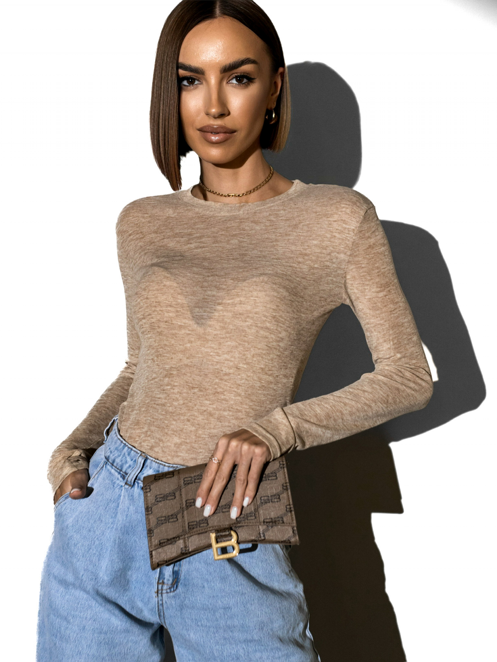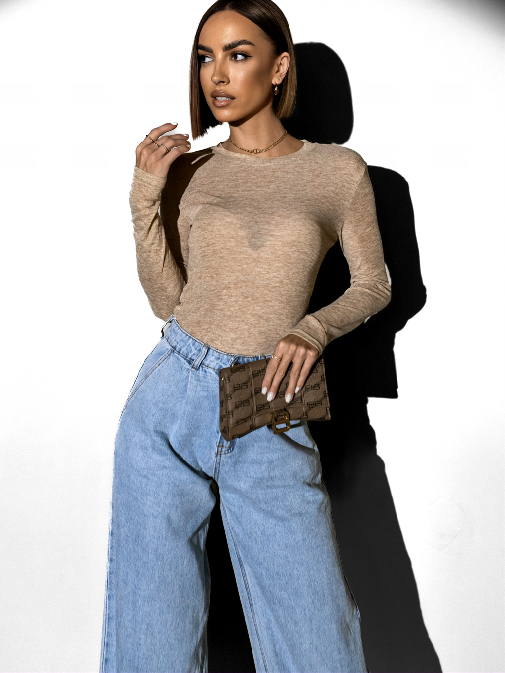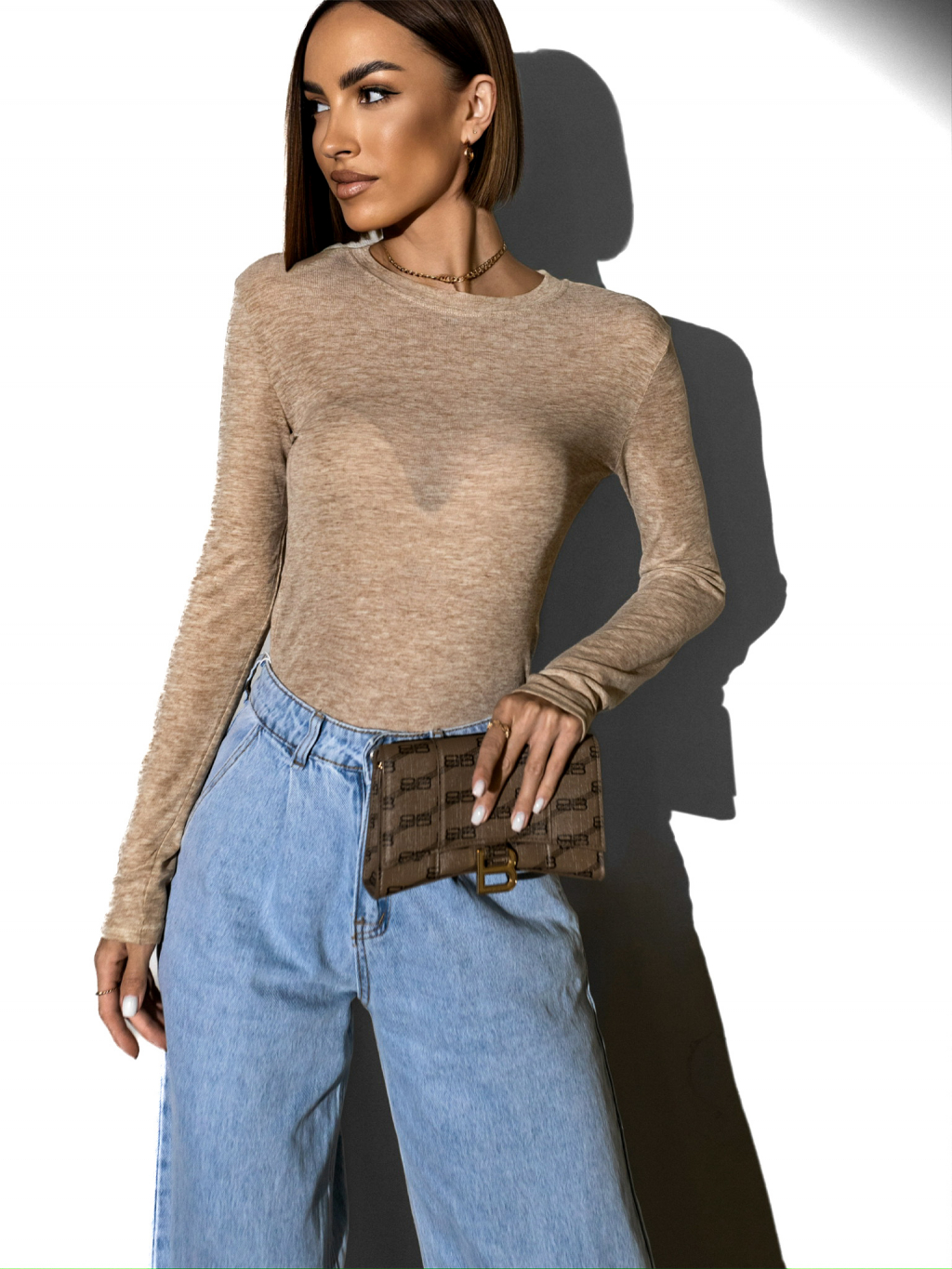 Béžové basic tričko PAZAR s dlhým rukávom
