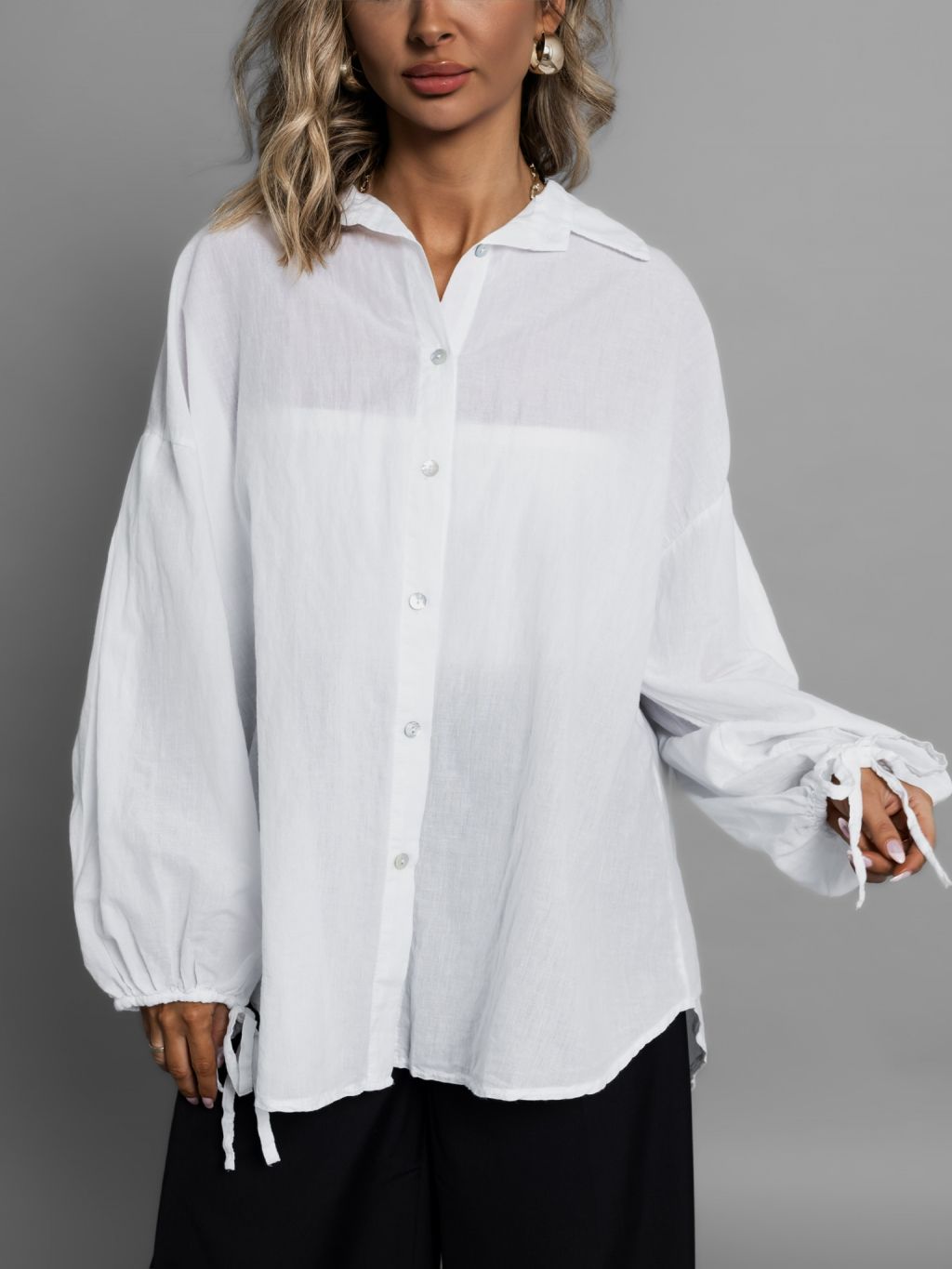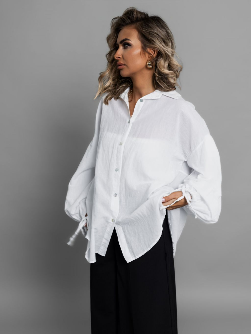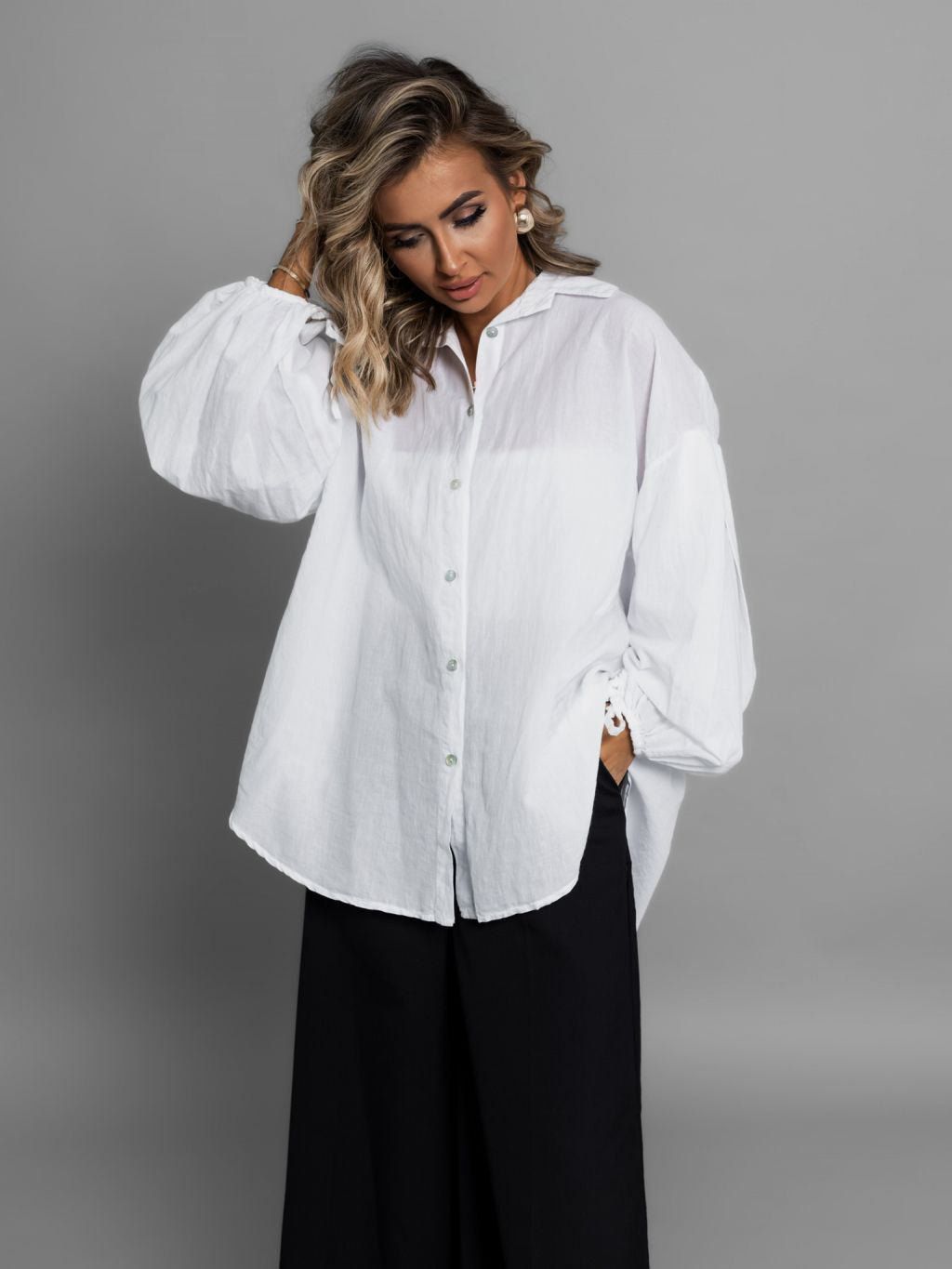 Biela bavlnená basic oversize košeľa ALEEZA