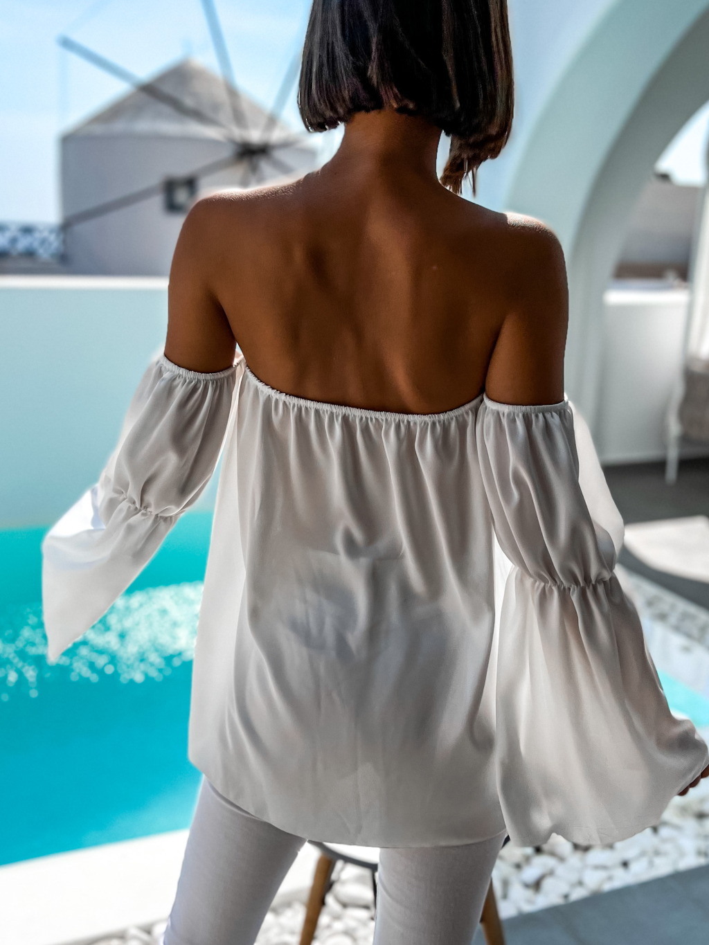 Biela elegantná blúzka BREEZE na ramená