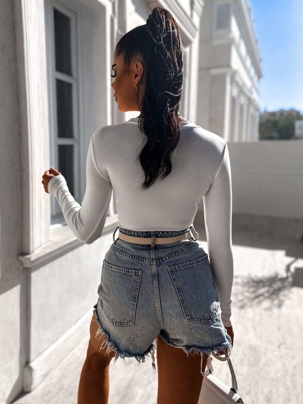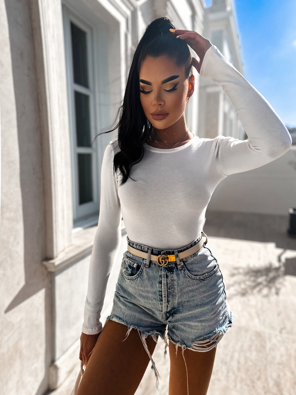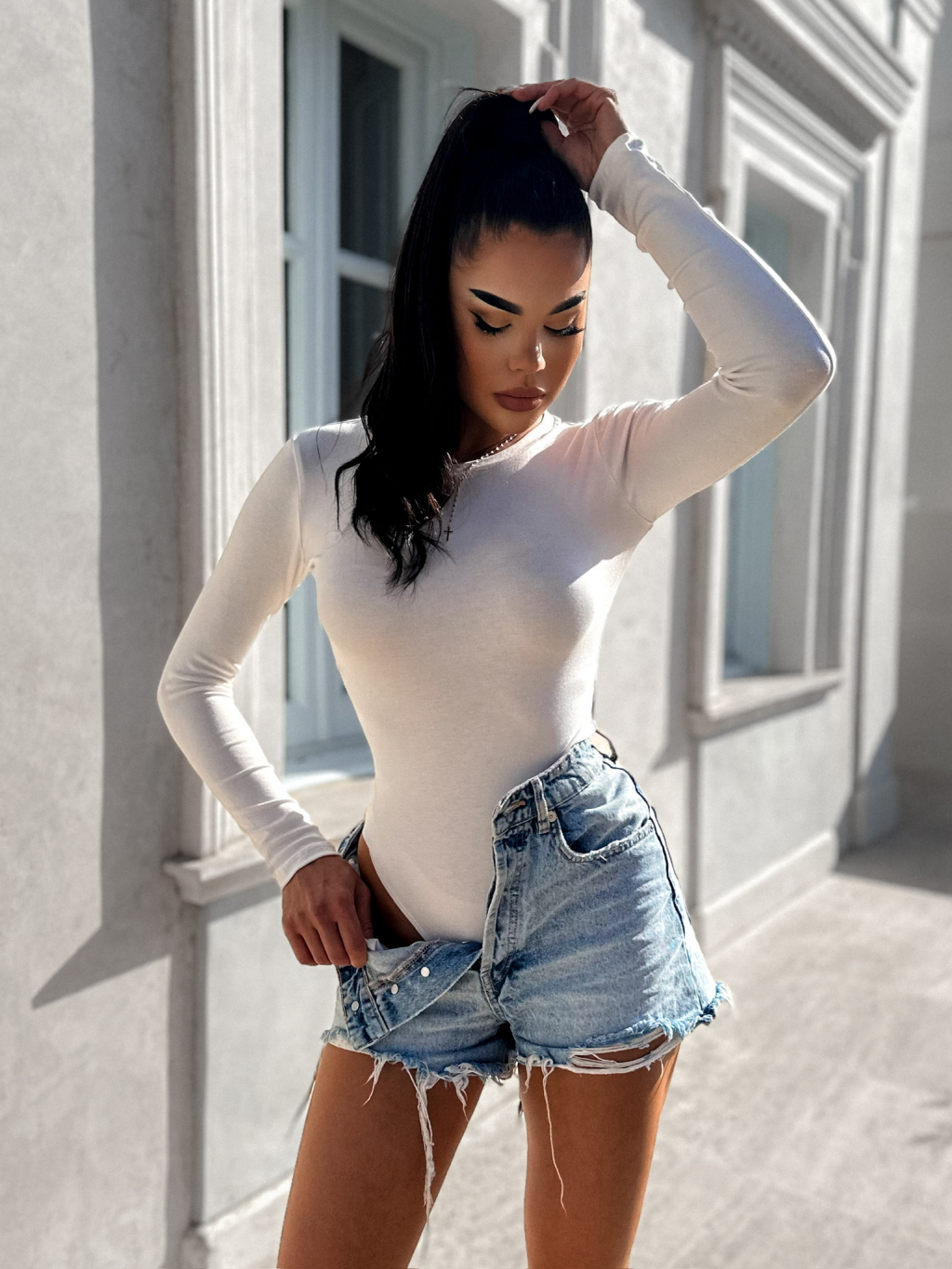Biele jednoduché body ZELIEN s dlhým rukávom