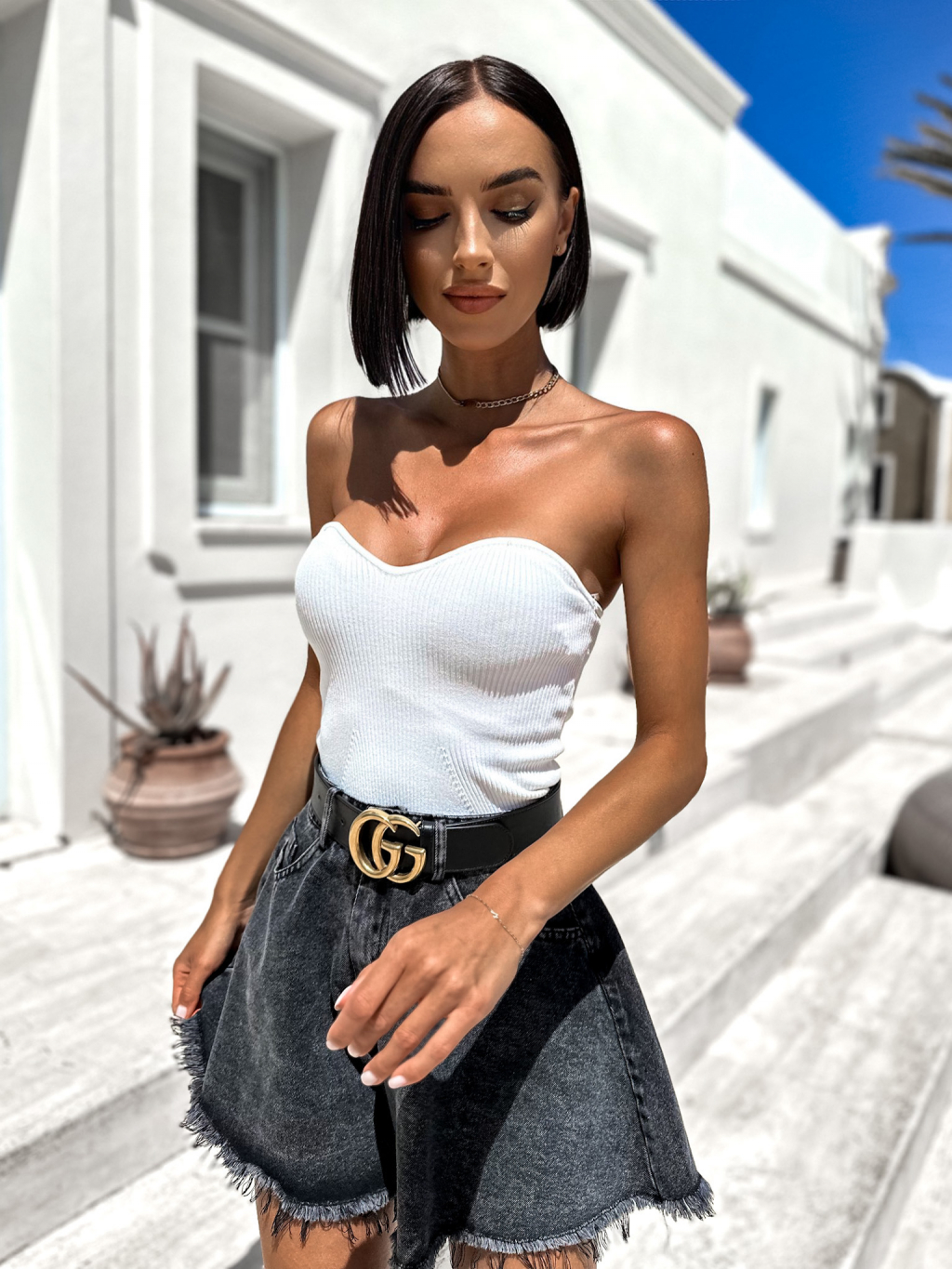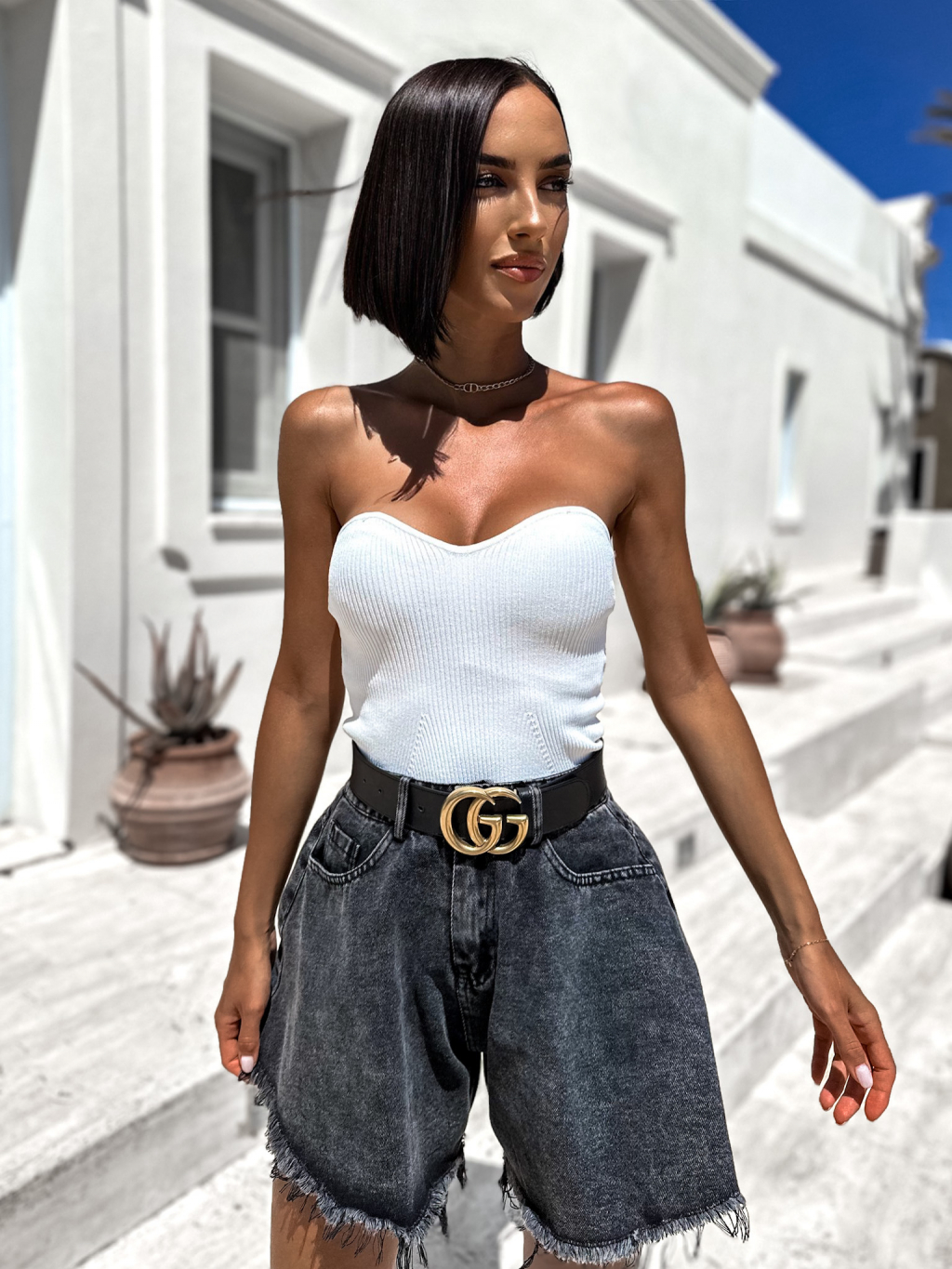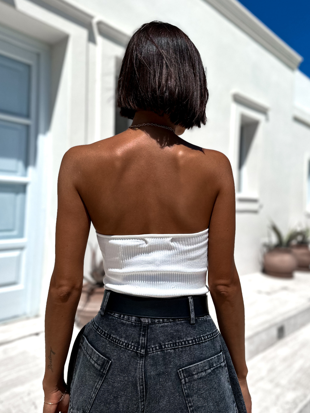 Biely crop top CLEARUS bez ramienok