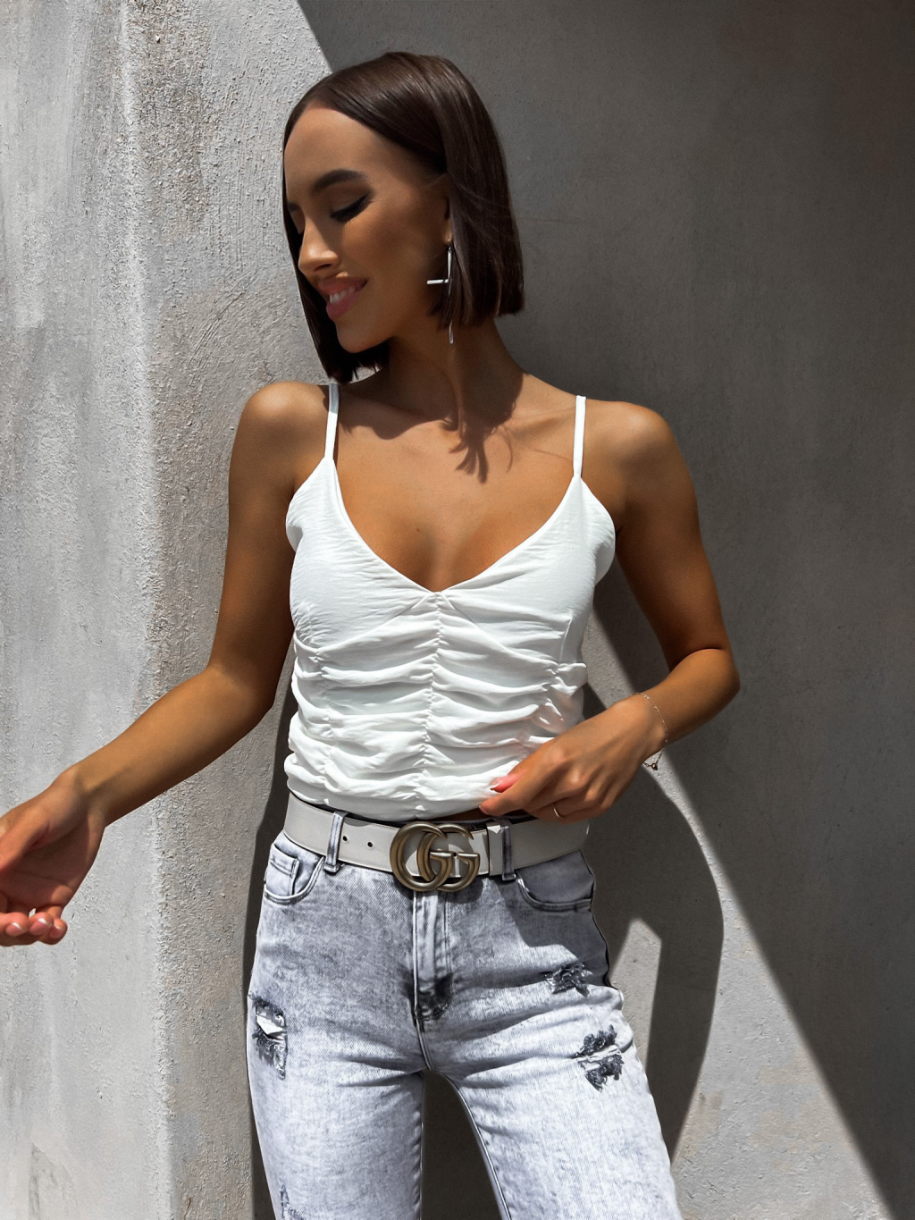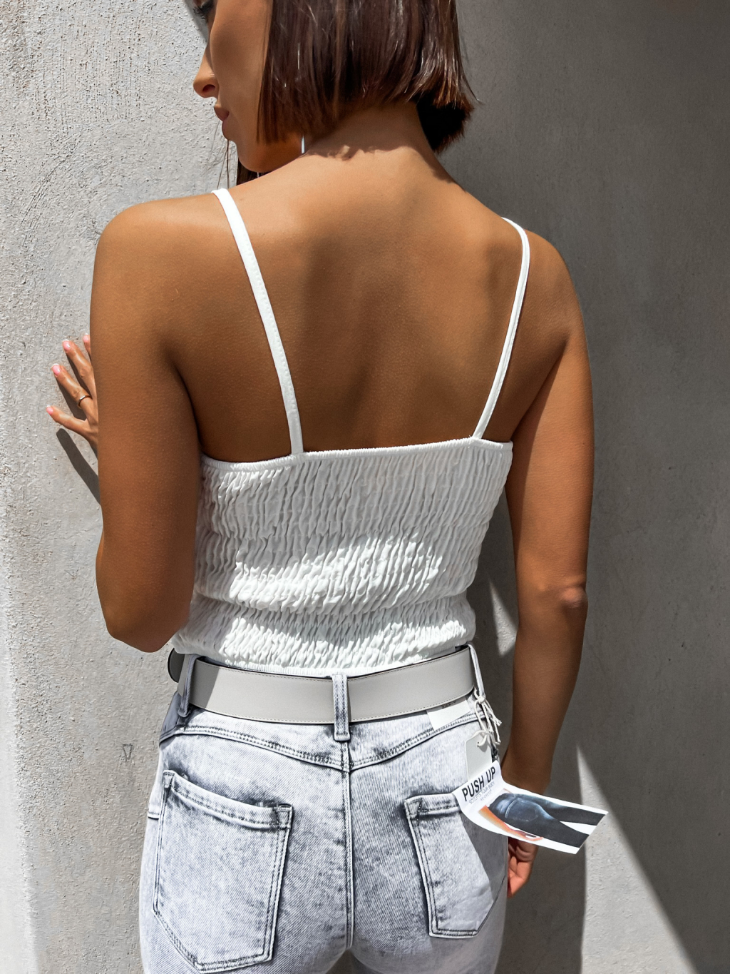 Biely nariasený tielkový top FROLIN