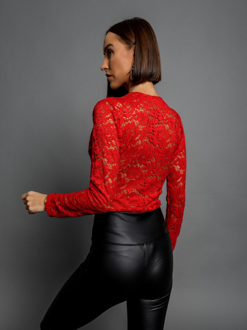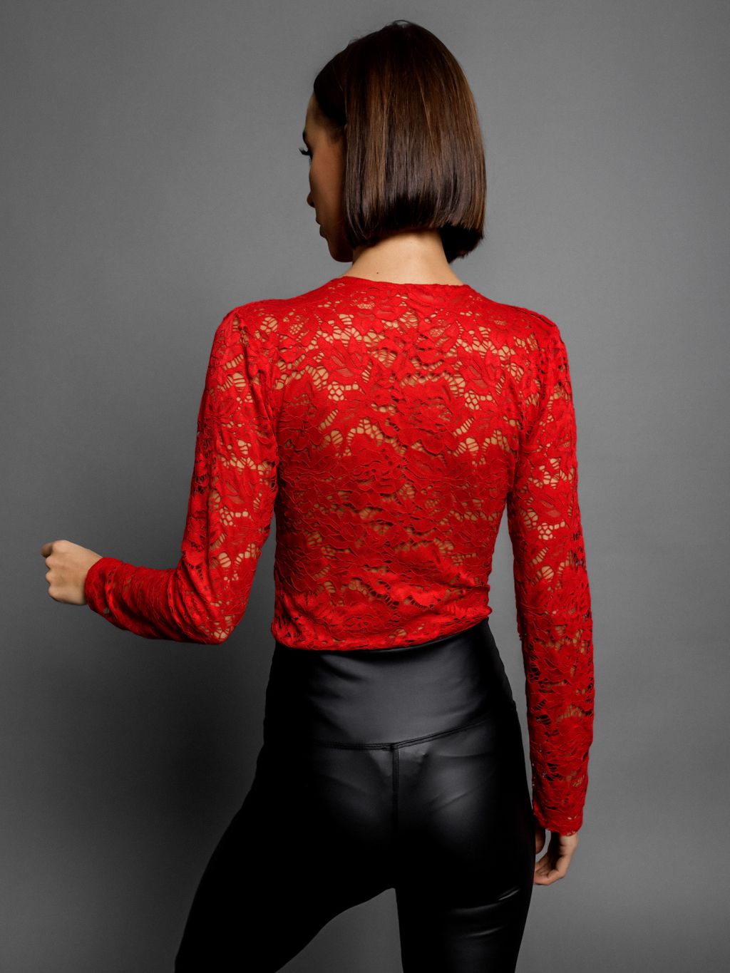 Červené krajkové body JOENY s výstrihom