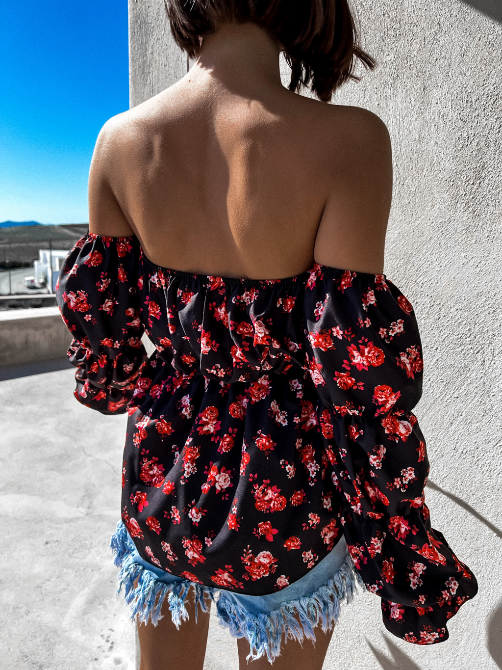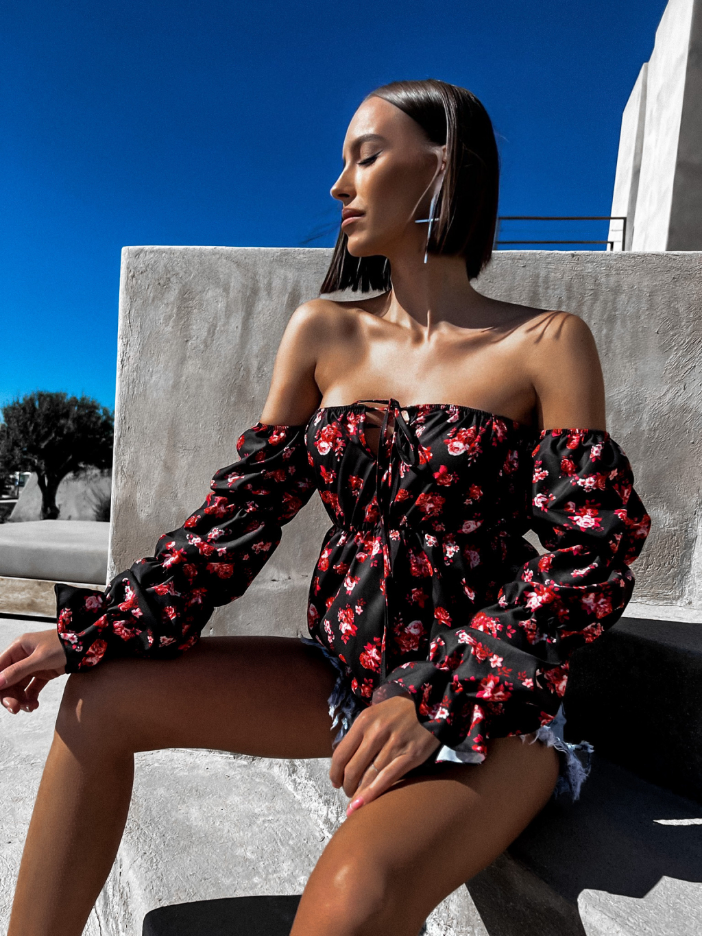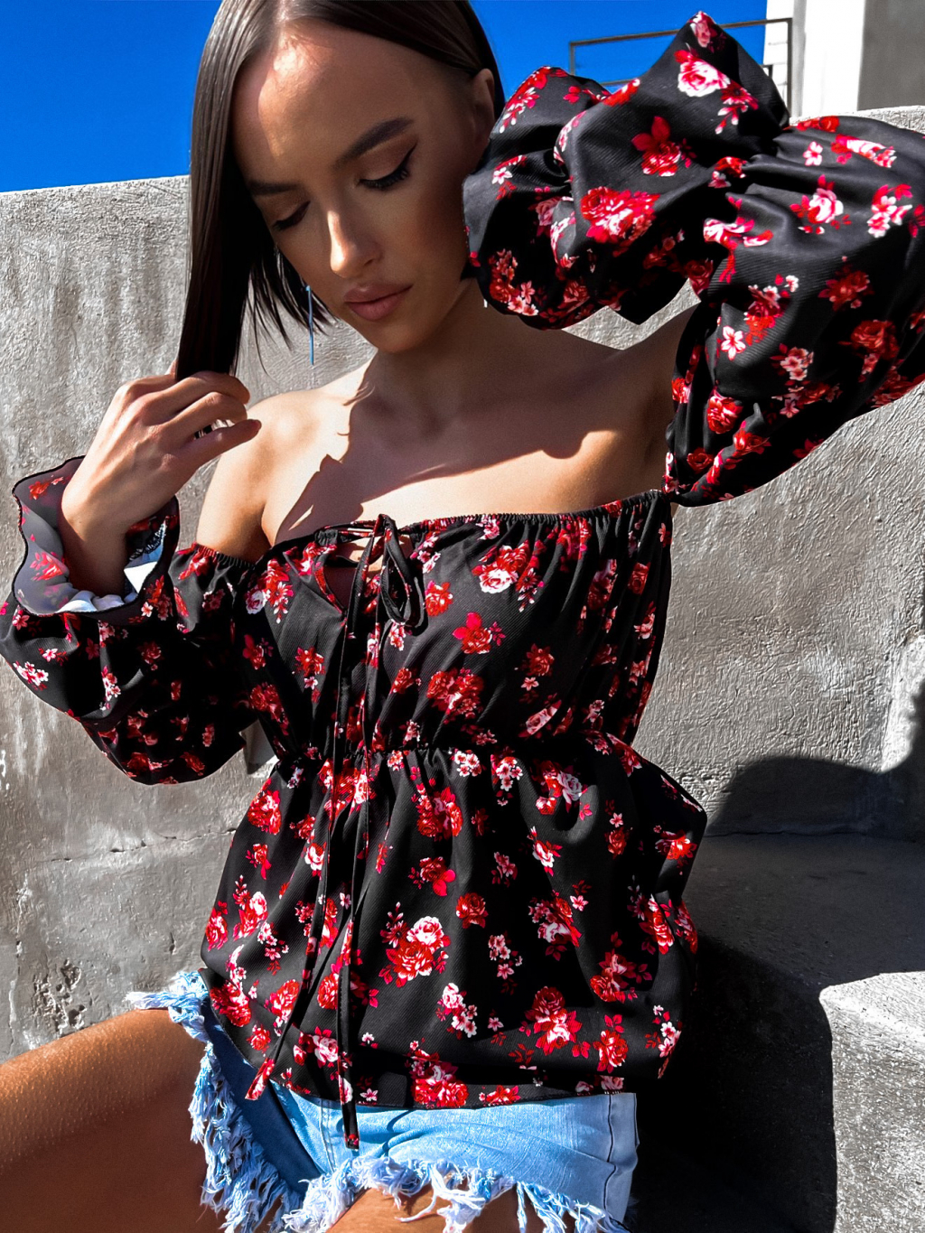 Čierna blúzka HAJIMA s kvetinovým vzorom
