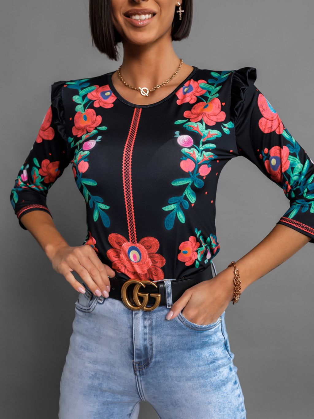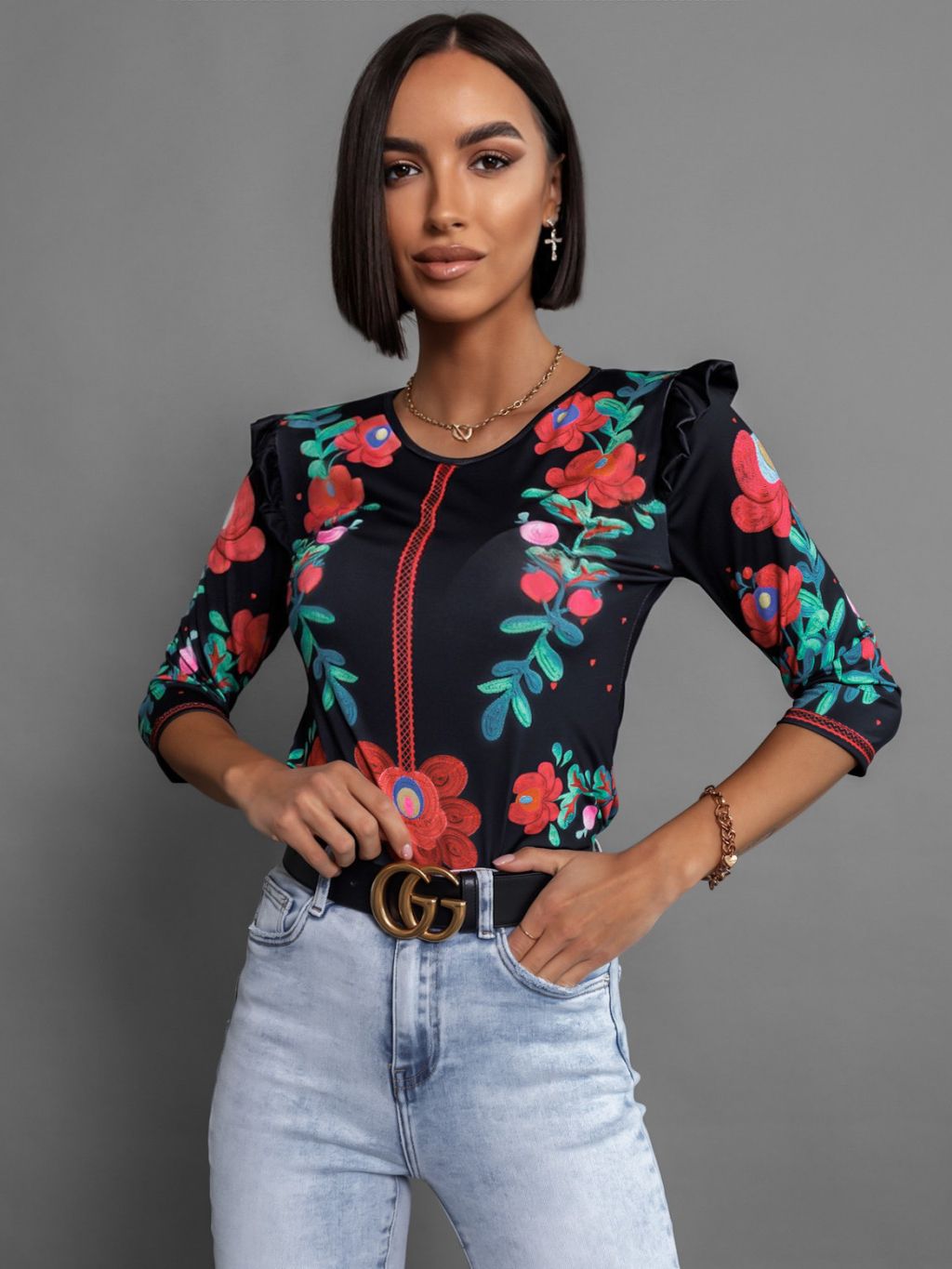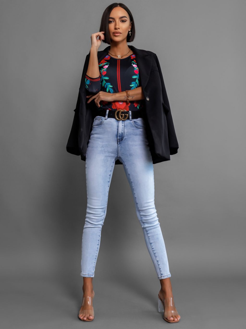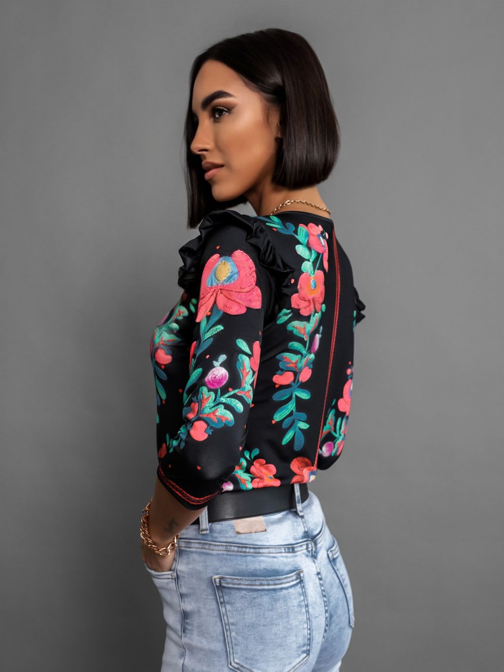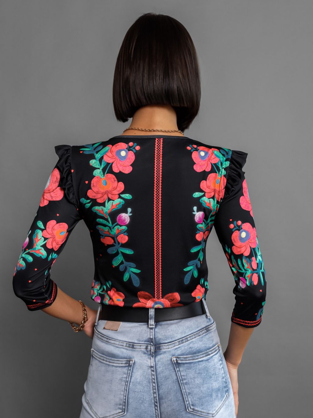 Čierne elegantné body LUKA s kvetinovými vzormi