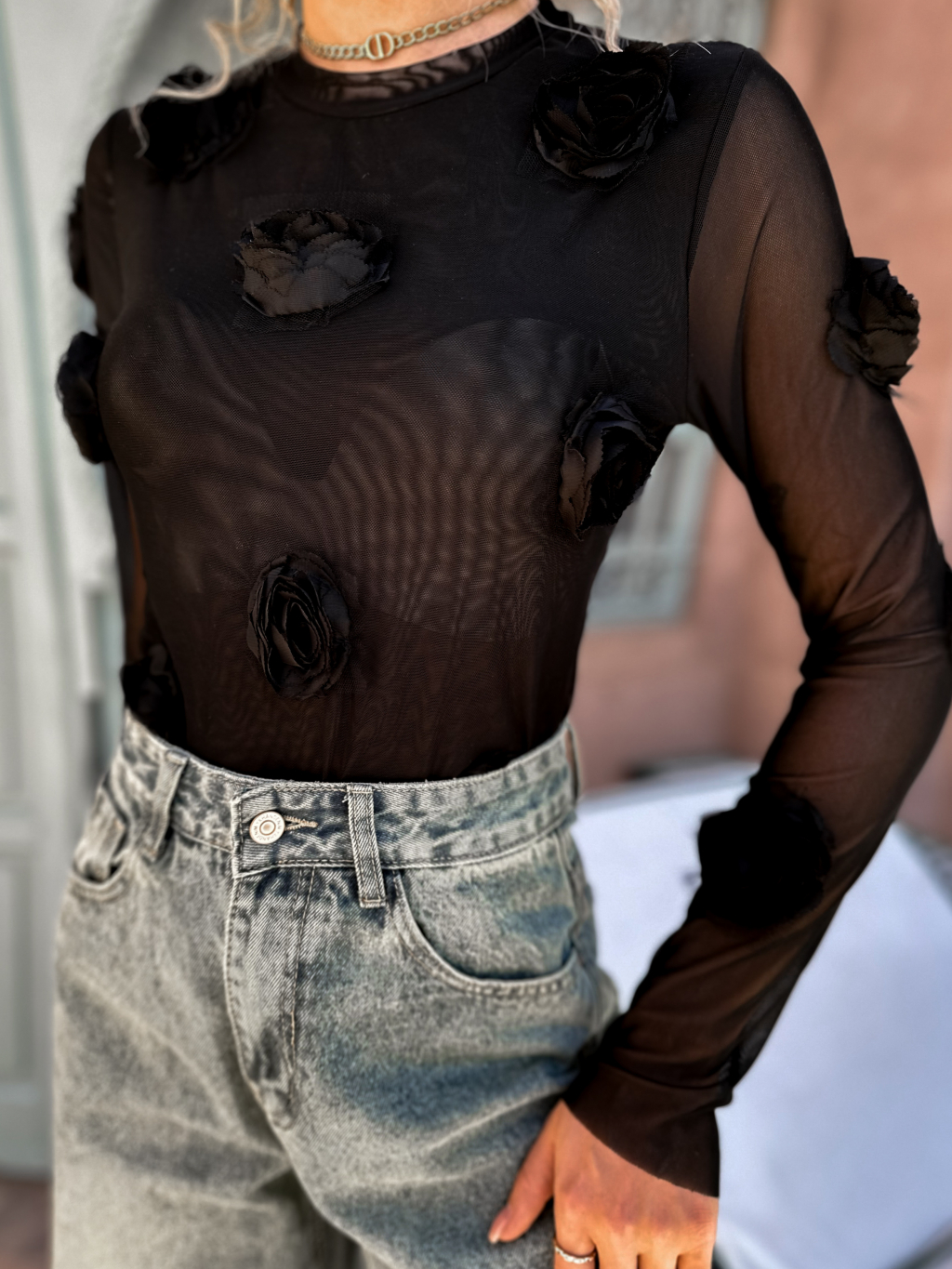 Čierne tričko ILLAI s aplikáciou kvetov