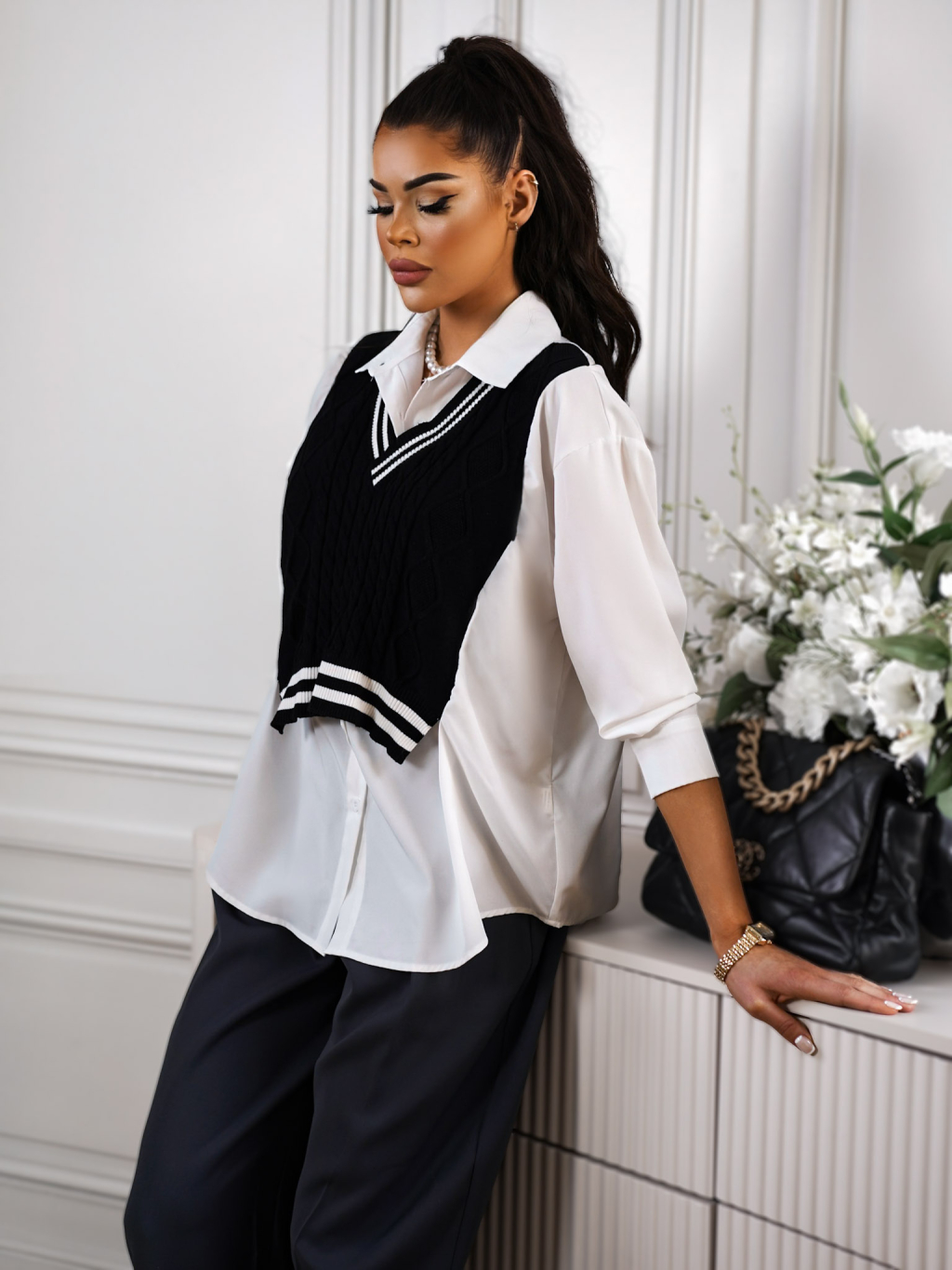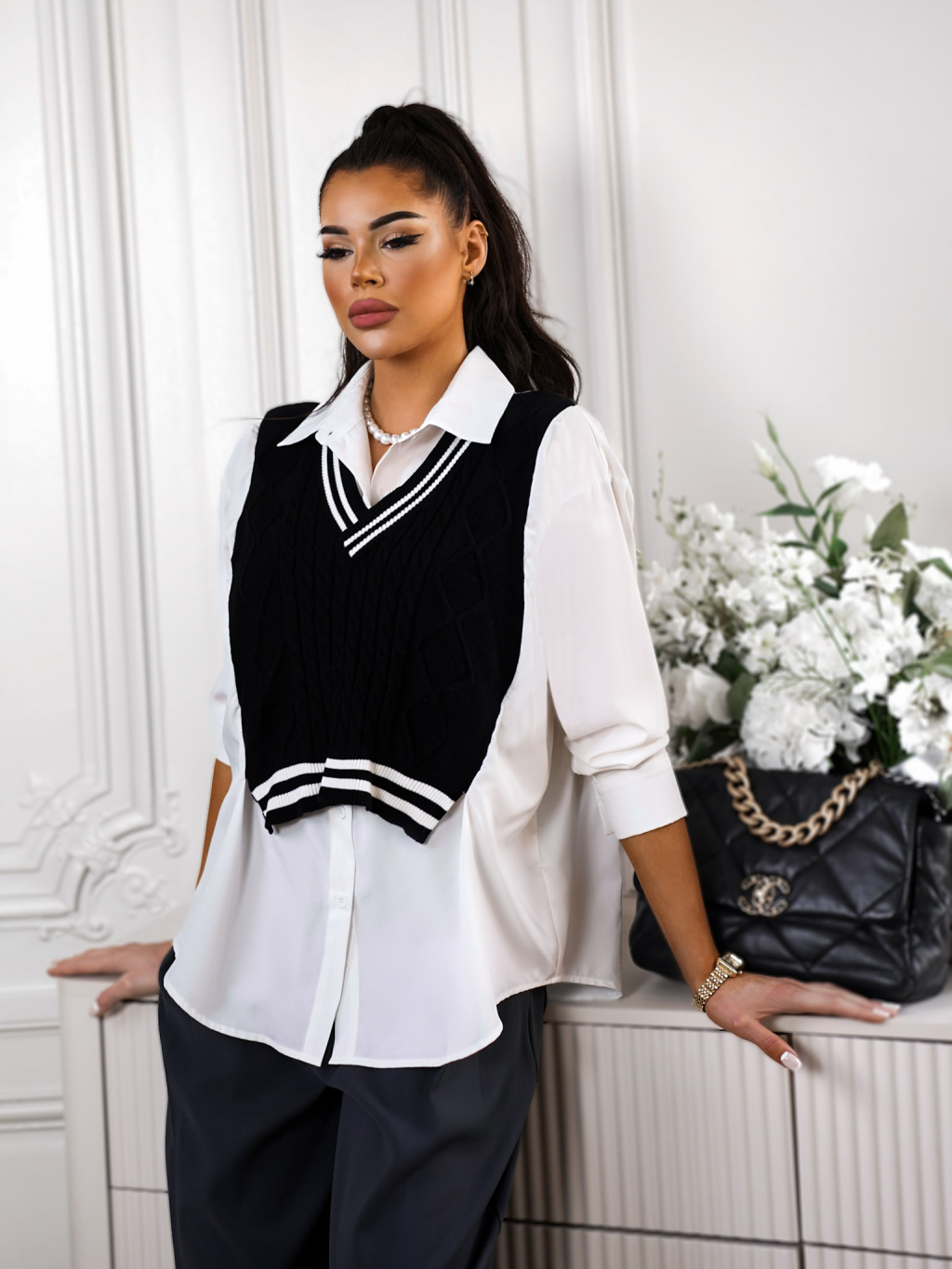 Čiernobiela oversized tunika DAYANA s vestičkou