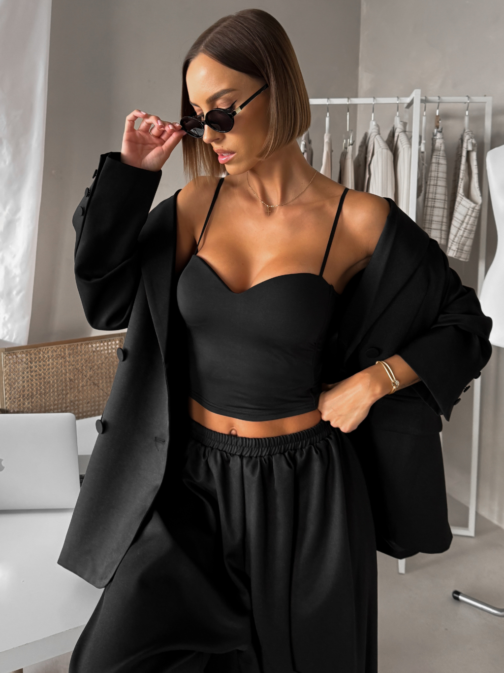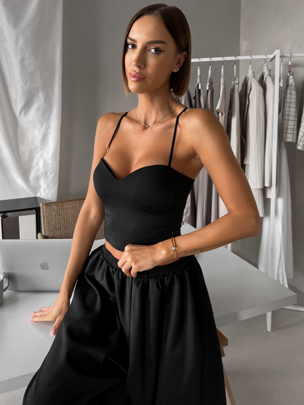 Čierny krátky korzetový top BRONZE