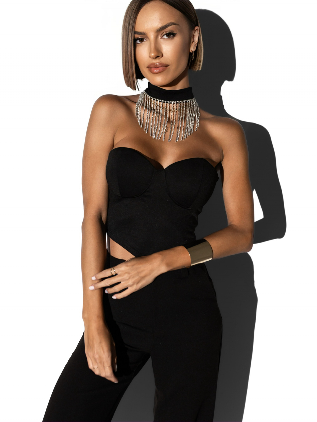 Čierny top MATHIAS so striebornou aplikáciou pri krku