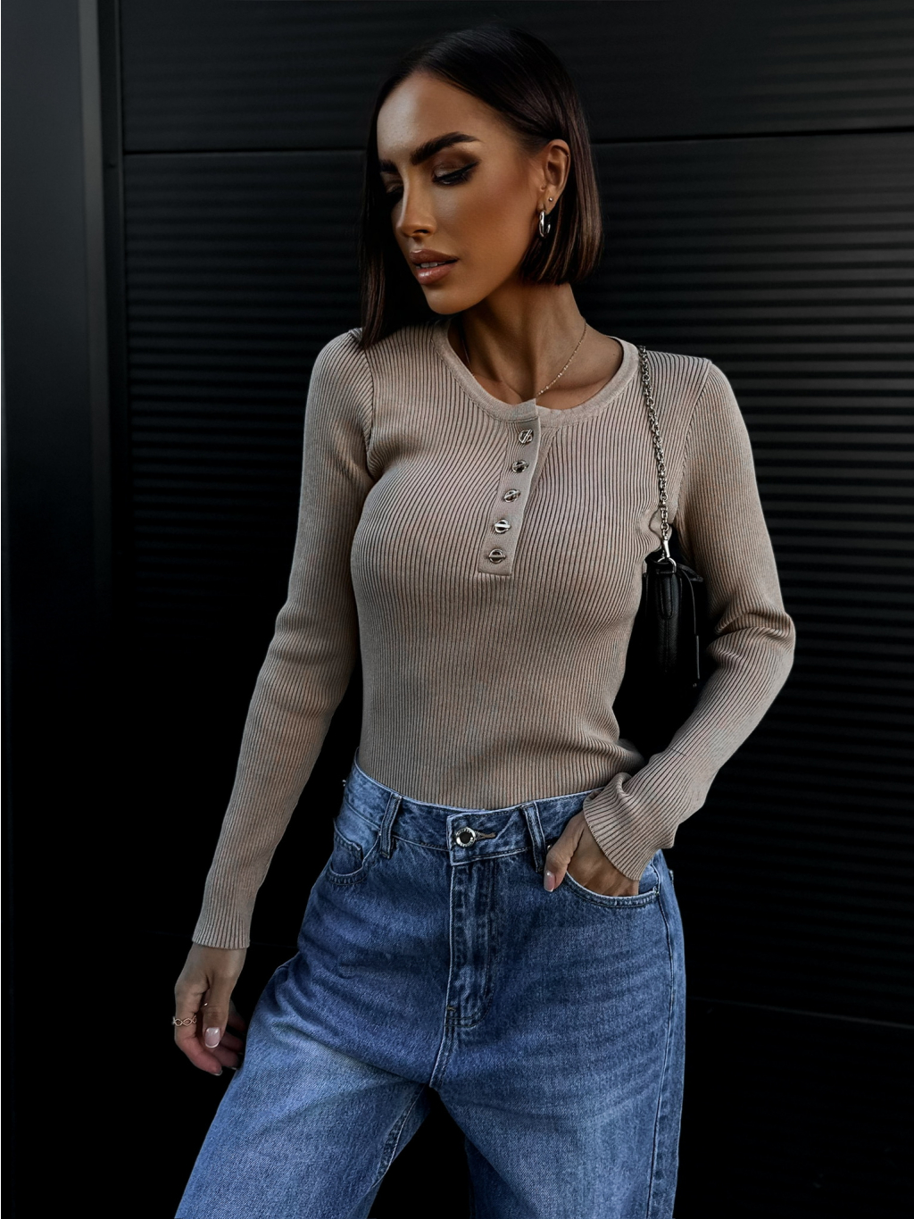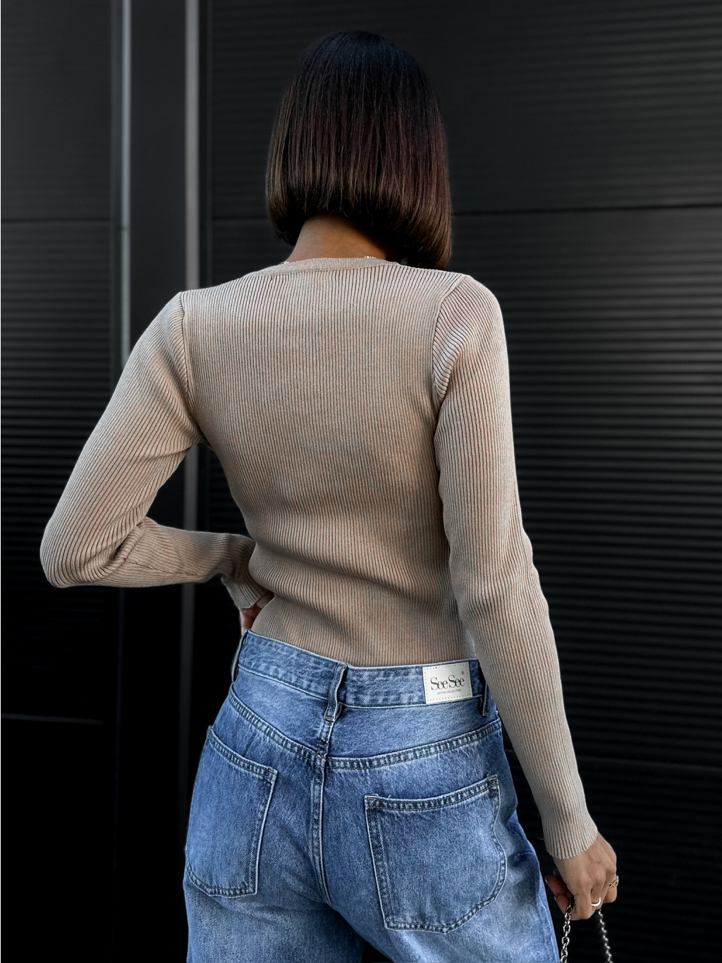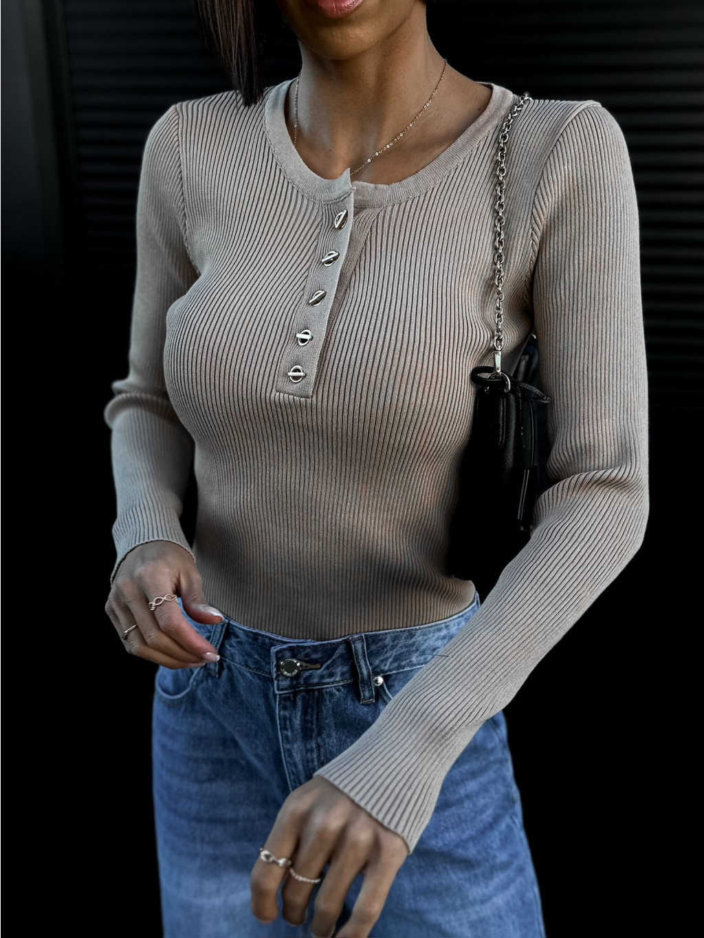 Hnedý rebrovaný top THULIT