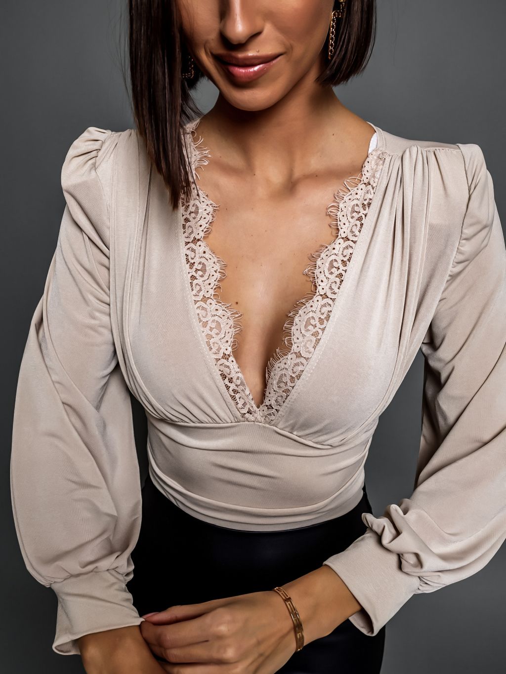 Krémové elegantné body ROUGLIE s vypchávkami na ramenách