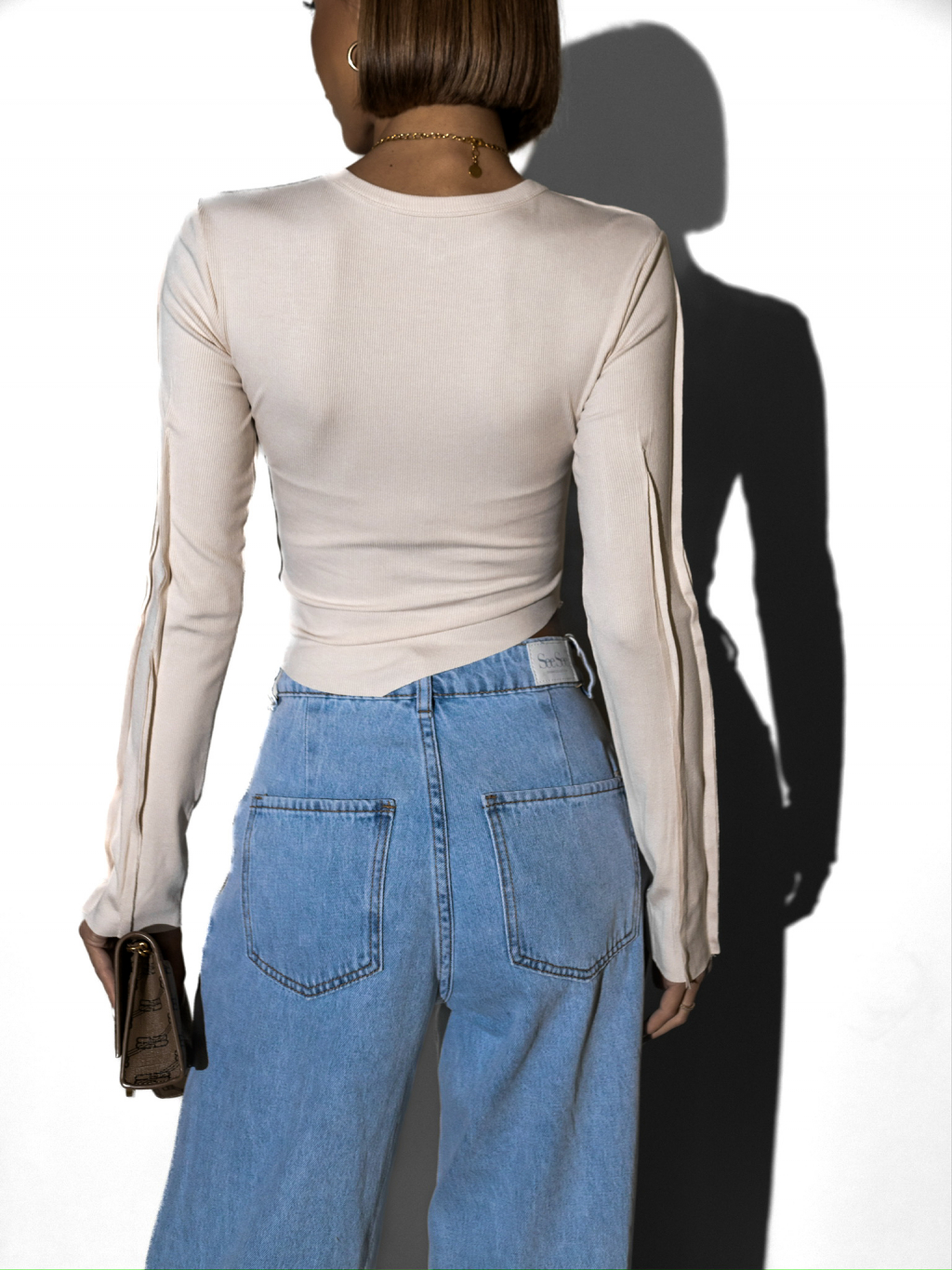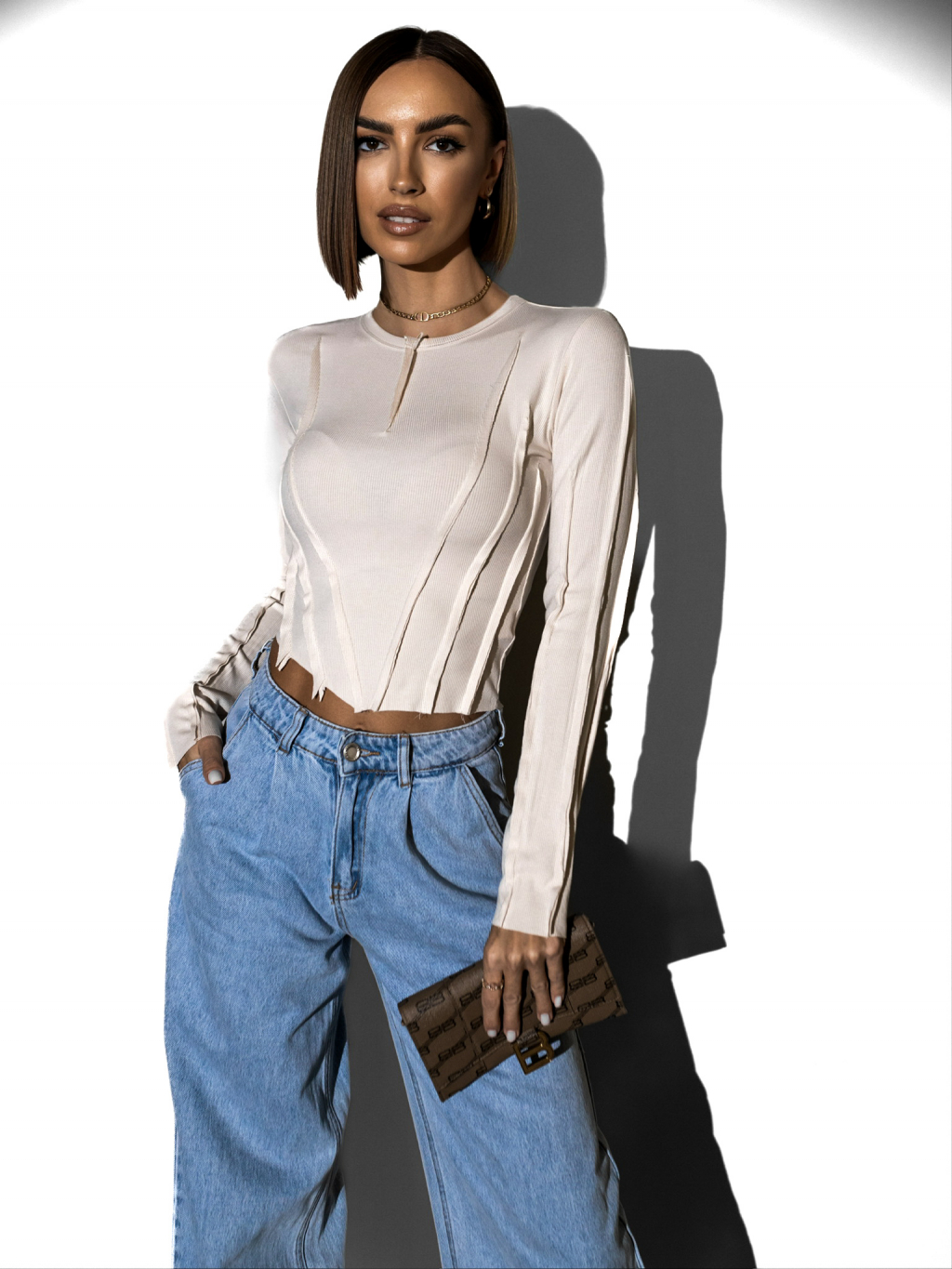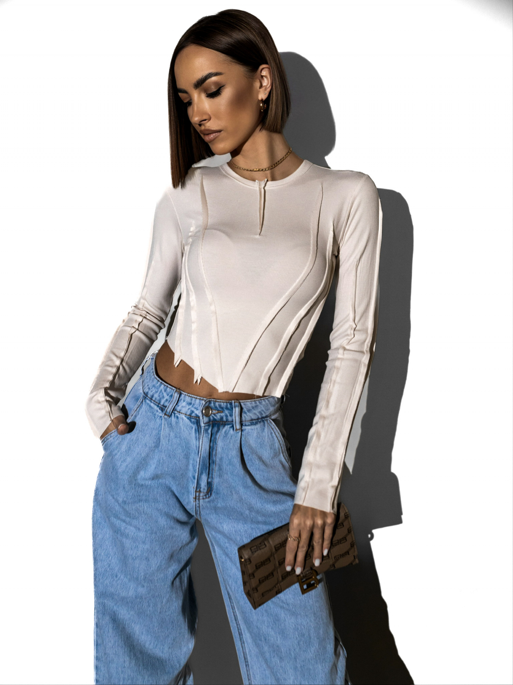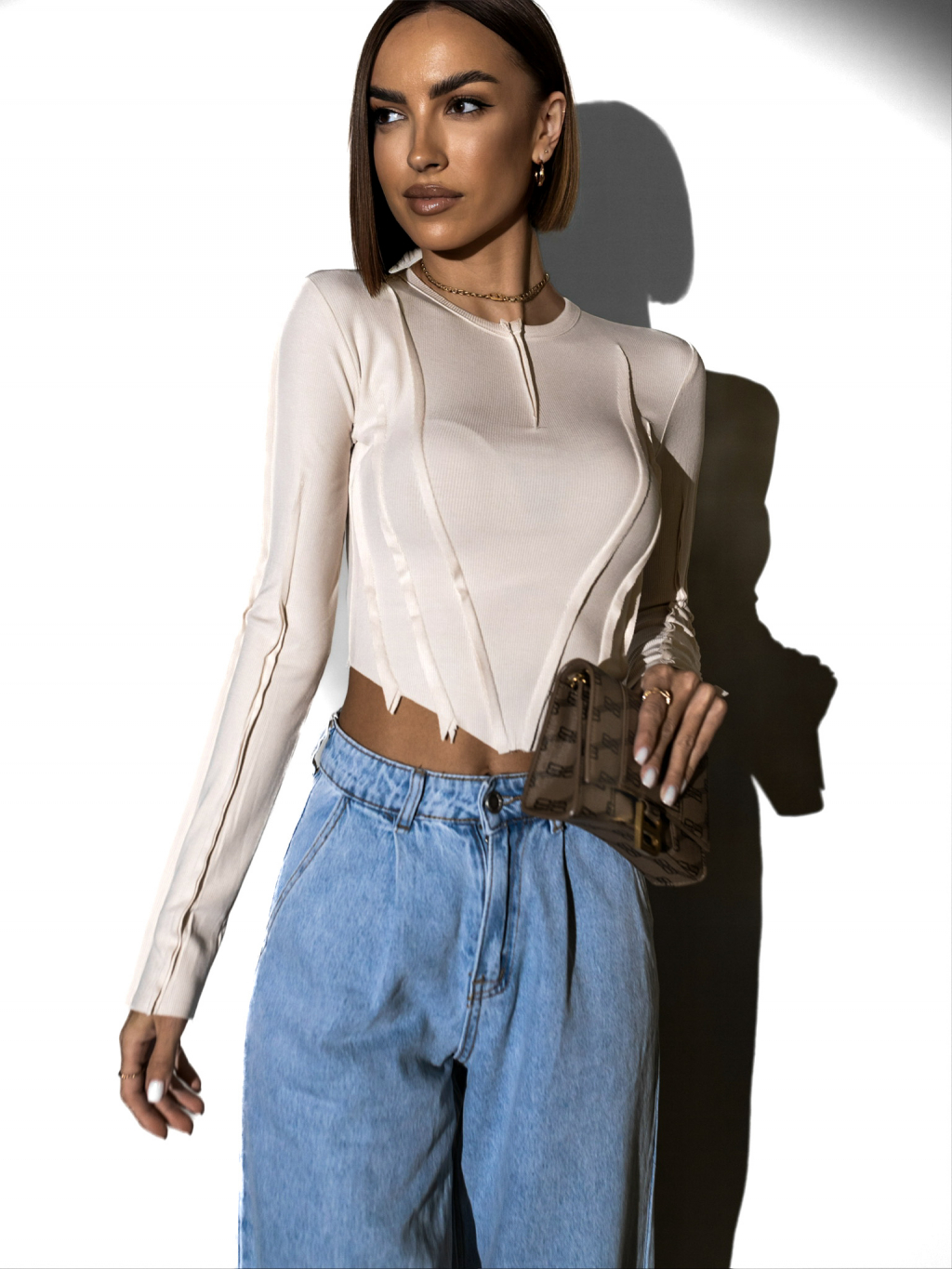 Krémový džersejový top YARIM s dlhým rukávom