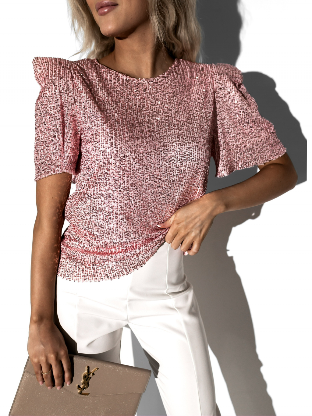 Ružové flitrované tričko NADIA s vypchávkami na ramenách