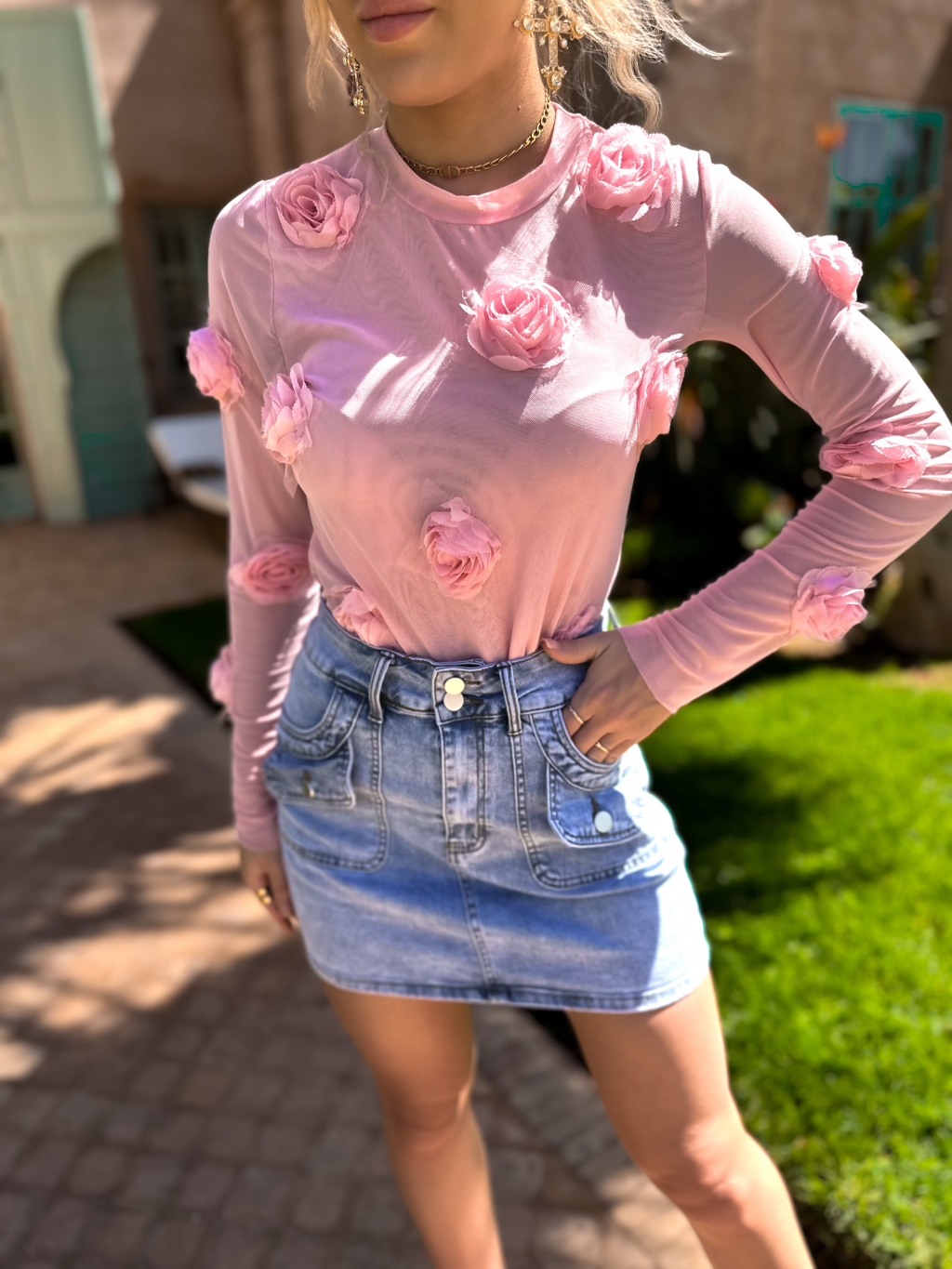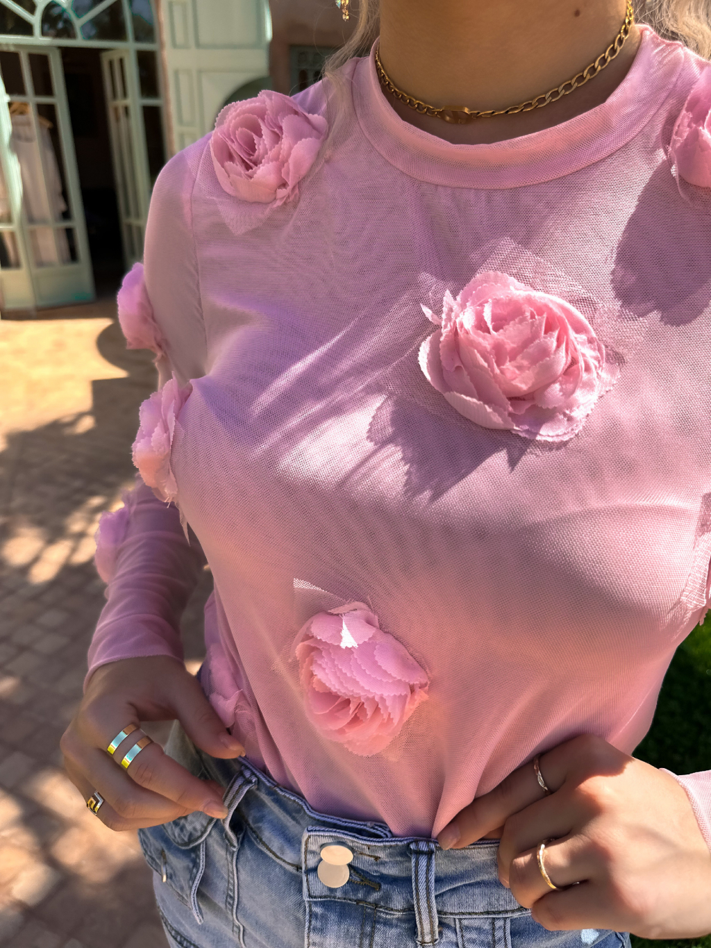 Ružové kvetinové tričko ILLAI s dlhým rukávom