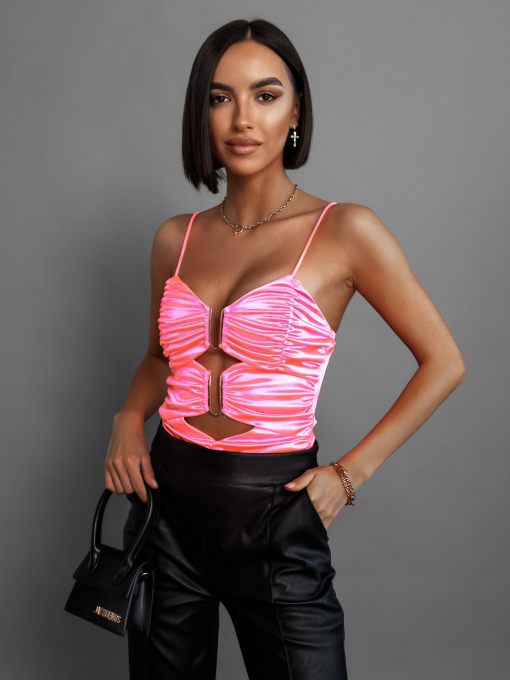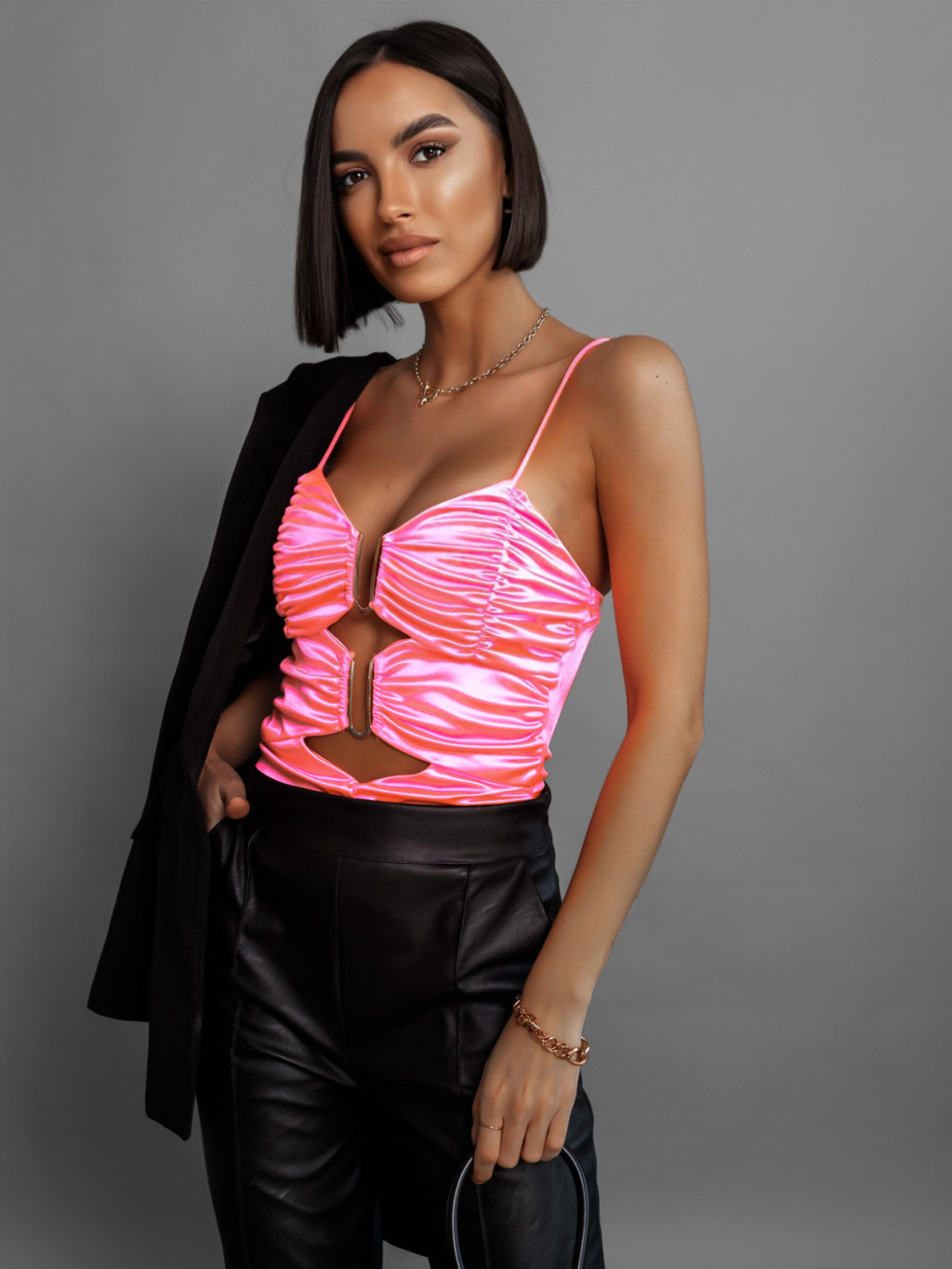 Ružový nariasený top CORBIN s prestrihmi