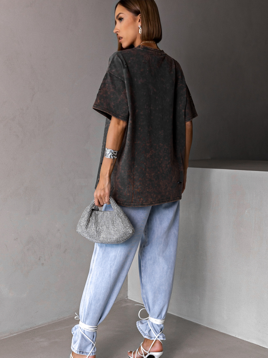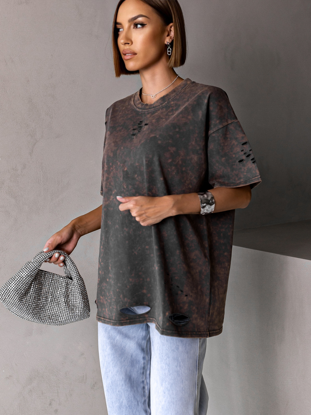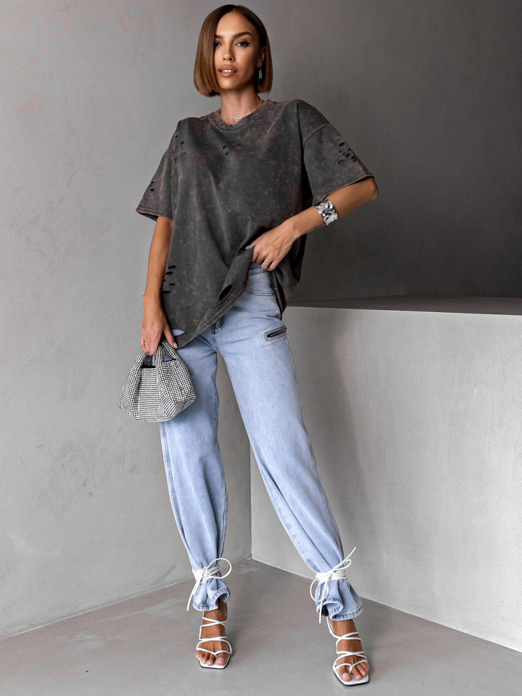 Šedé oversize trhané tričko BERATI