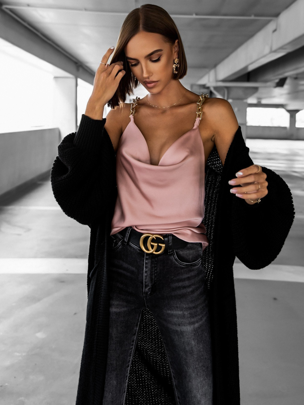 Staroružový elegantný top GENEVIA so zlatými ramienkami
