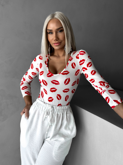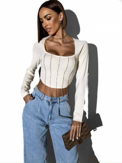 Biely elegantný top YOUSEL s 3D aplikáciou