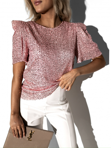 Krémový trblietavý top GILIS v tvare srdca
