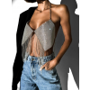 Strieborný trblietavý flitrový top SELMAR s kamienkami