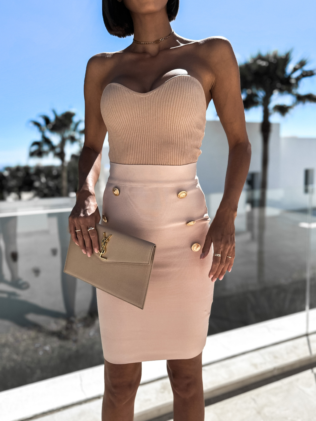 Svetlo hnedý crop top CLEARUS bez ramienok