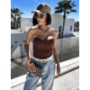Tmavo hnedý crop top CLEARUS bez ramienok