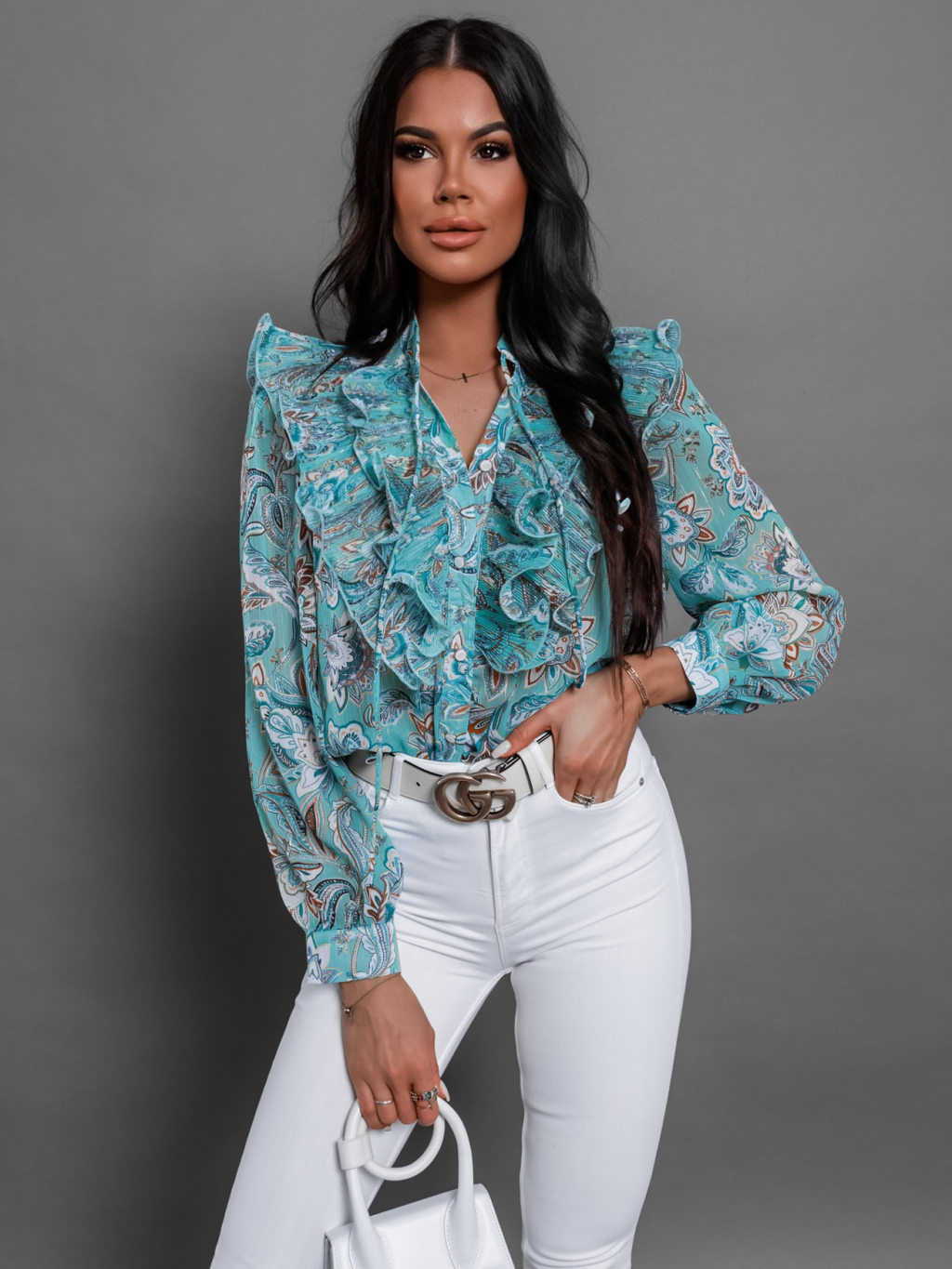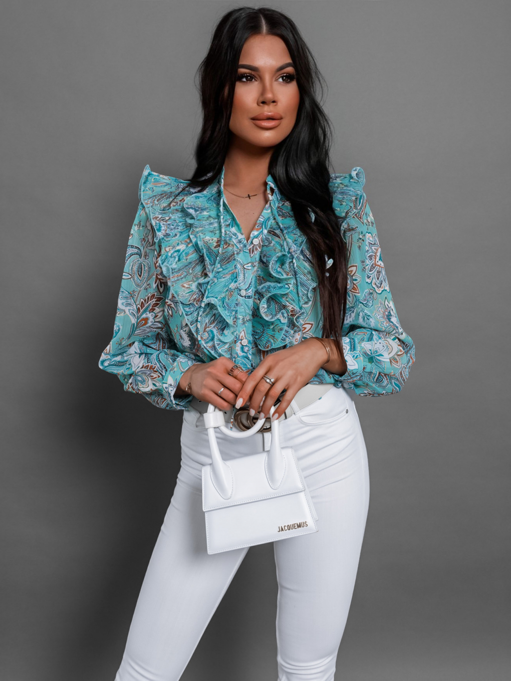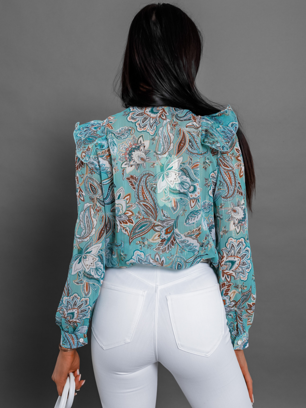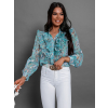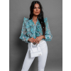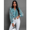 Tyrkysová elegantná blúzka SPIEL s kvetinovým vzorom