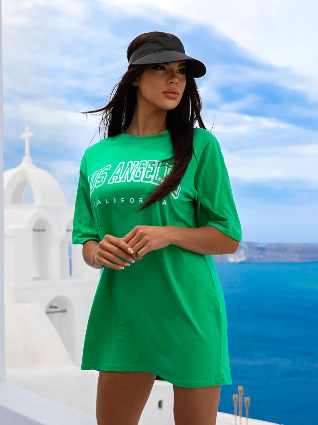 Zelené oversize tričko COLLARD s potlačou