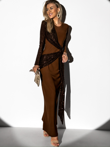 Bronzové plesové trblietavé šaty KAITO s flitrami