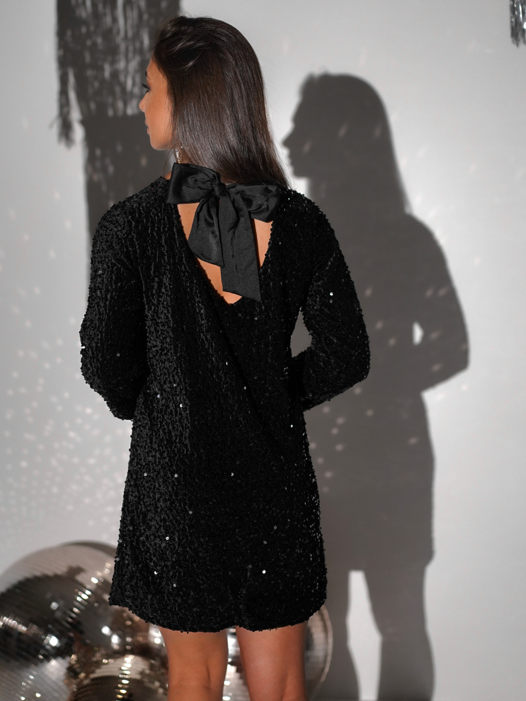 Čierne flitrované krátke koktailové šaty LESEK
