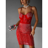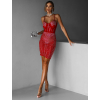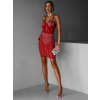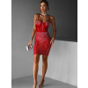 Červené trblietavé koktailové šaty ETTOREL s kamienkami