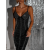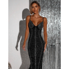 Čierne trblietavé dlhé elagantné šaty NELION s kamienkami