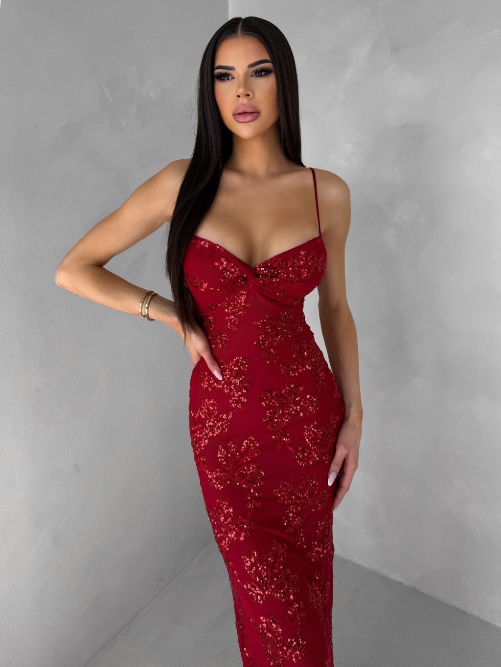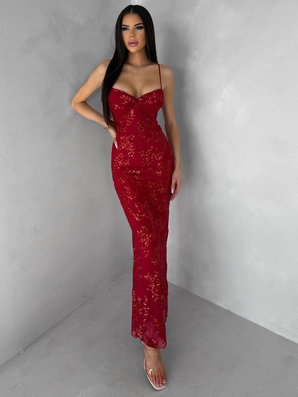 Červené spoločenské trblietavé dlhé šaty KAILINA