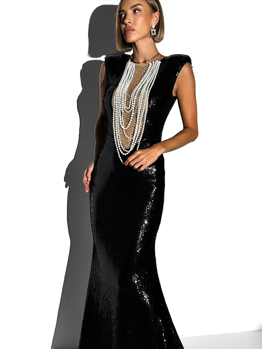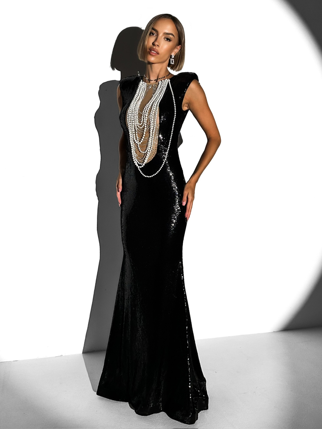 Čierne trblietavé plesové šaty KENTAR s perlami