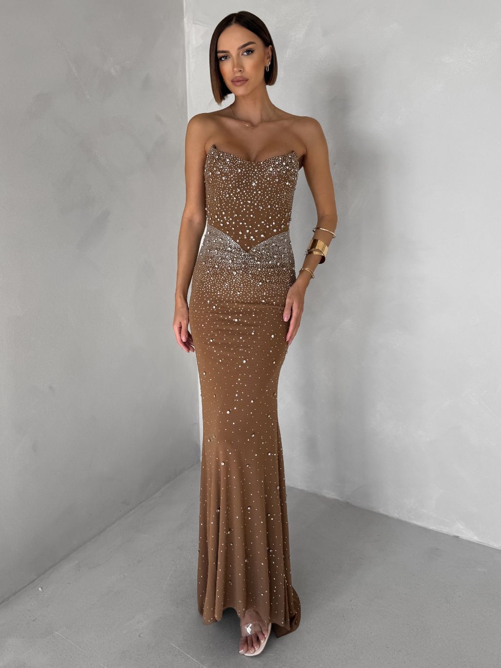 Hnedé nude trblietavé dlhé šaty XANDERA