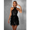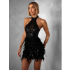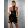 Luxusné čierne koktailové šaty BOZANA s flitrami