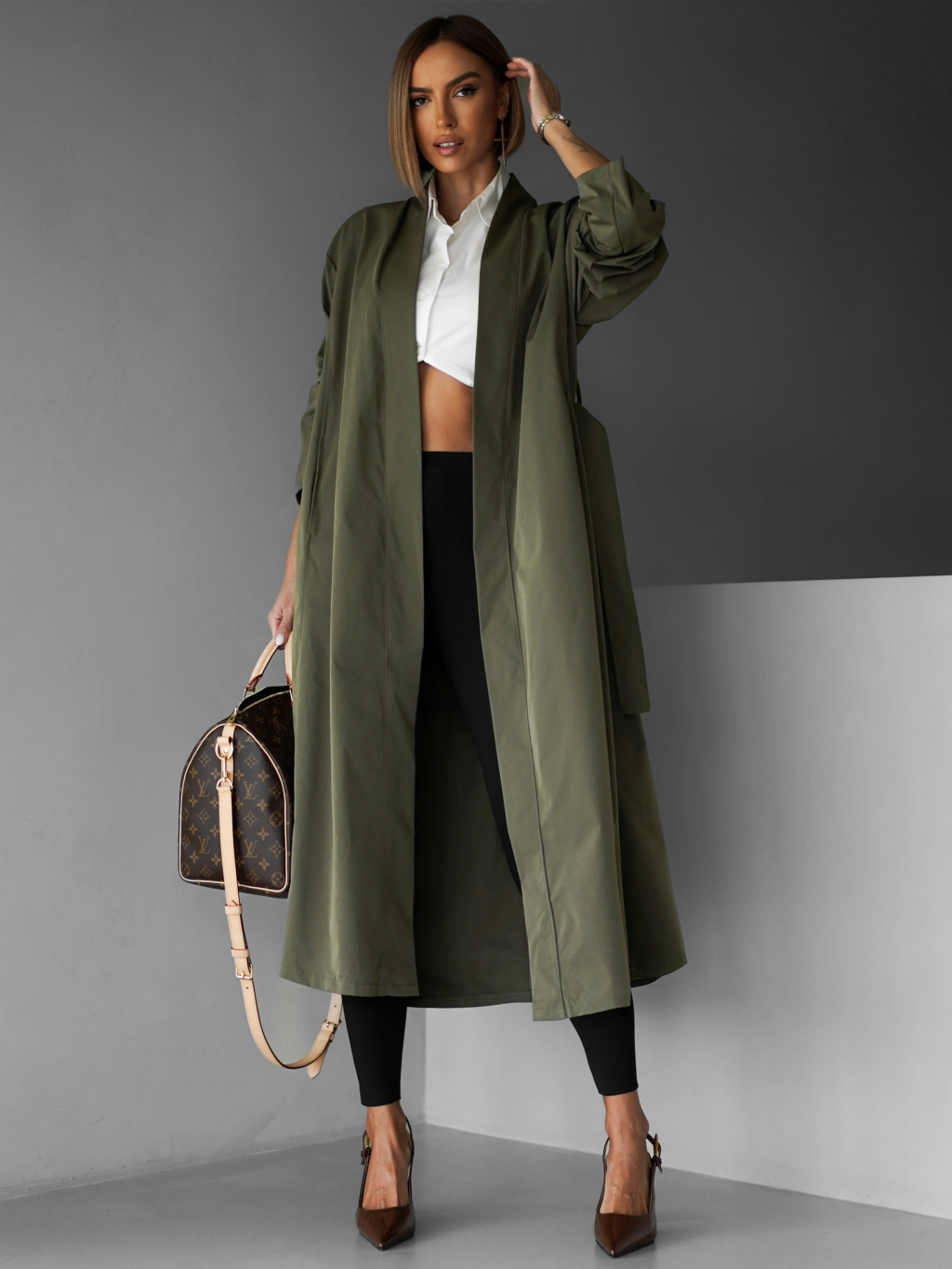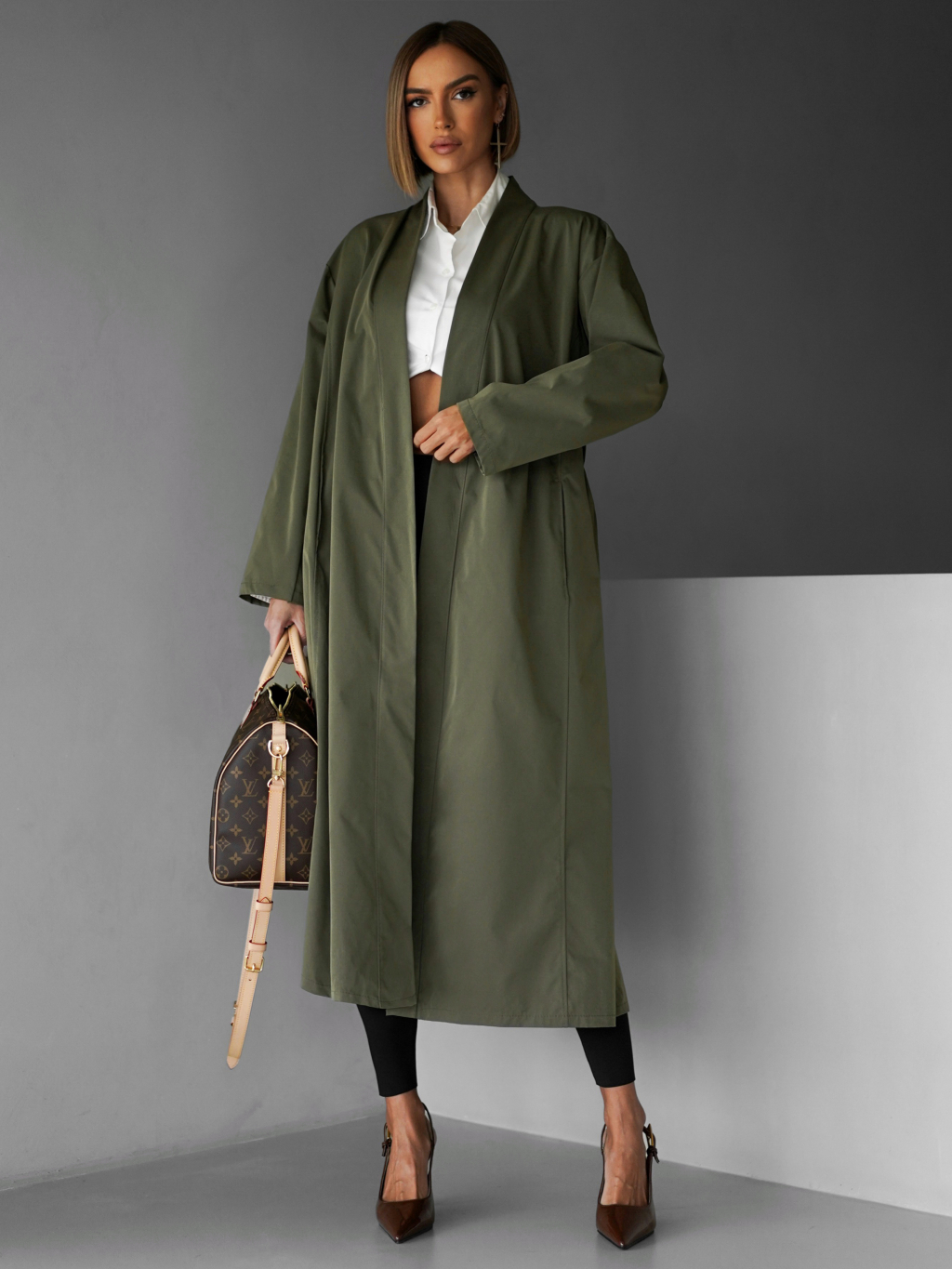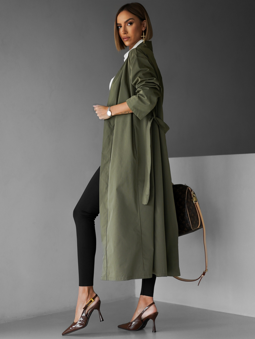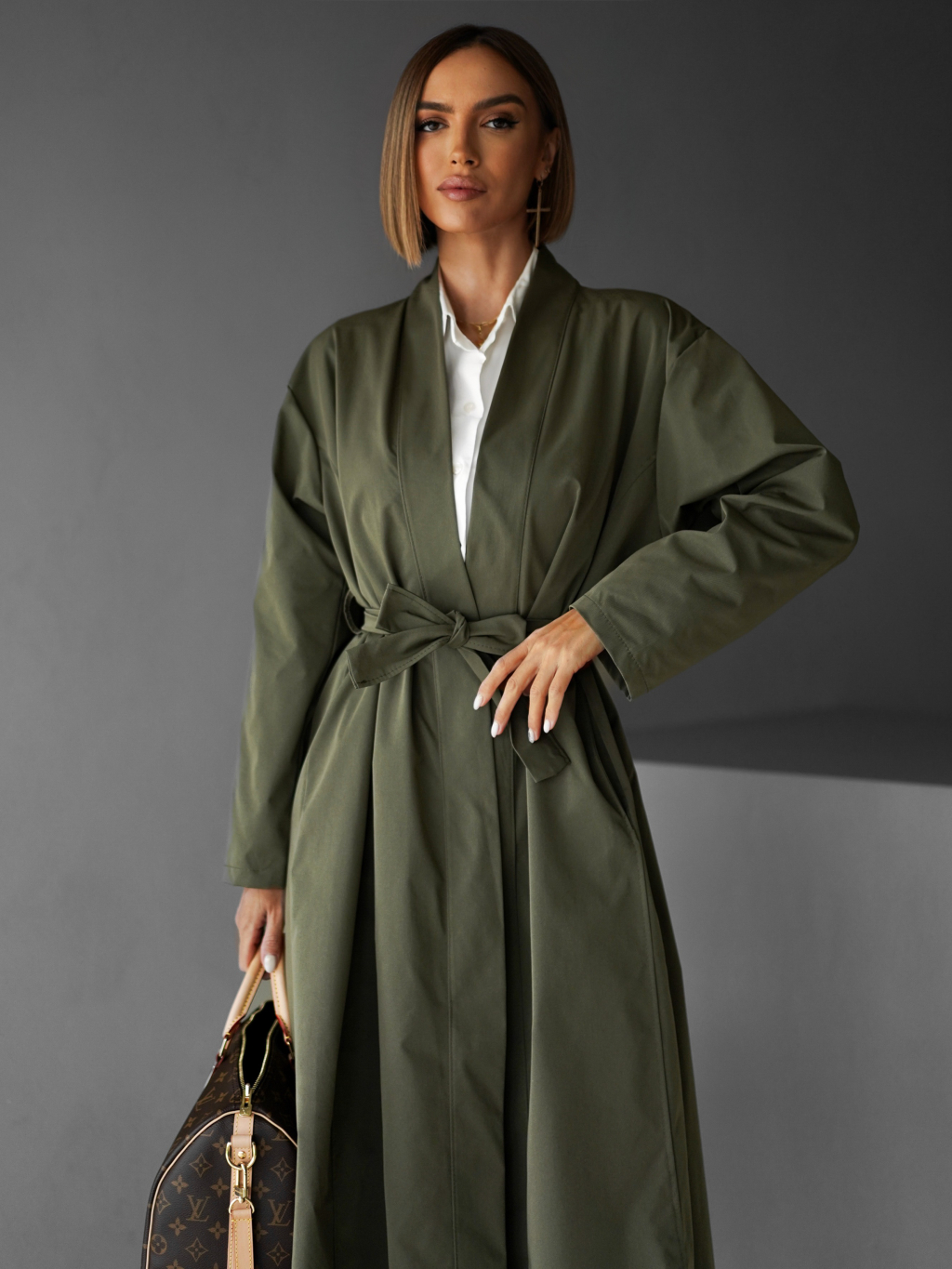 Kaki oversize dlhý kabát AERYTY