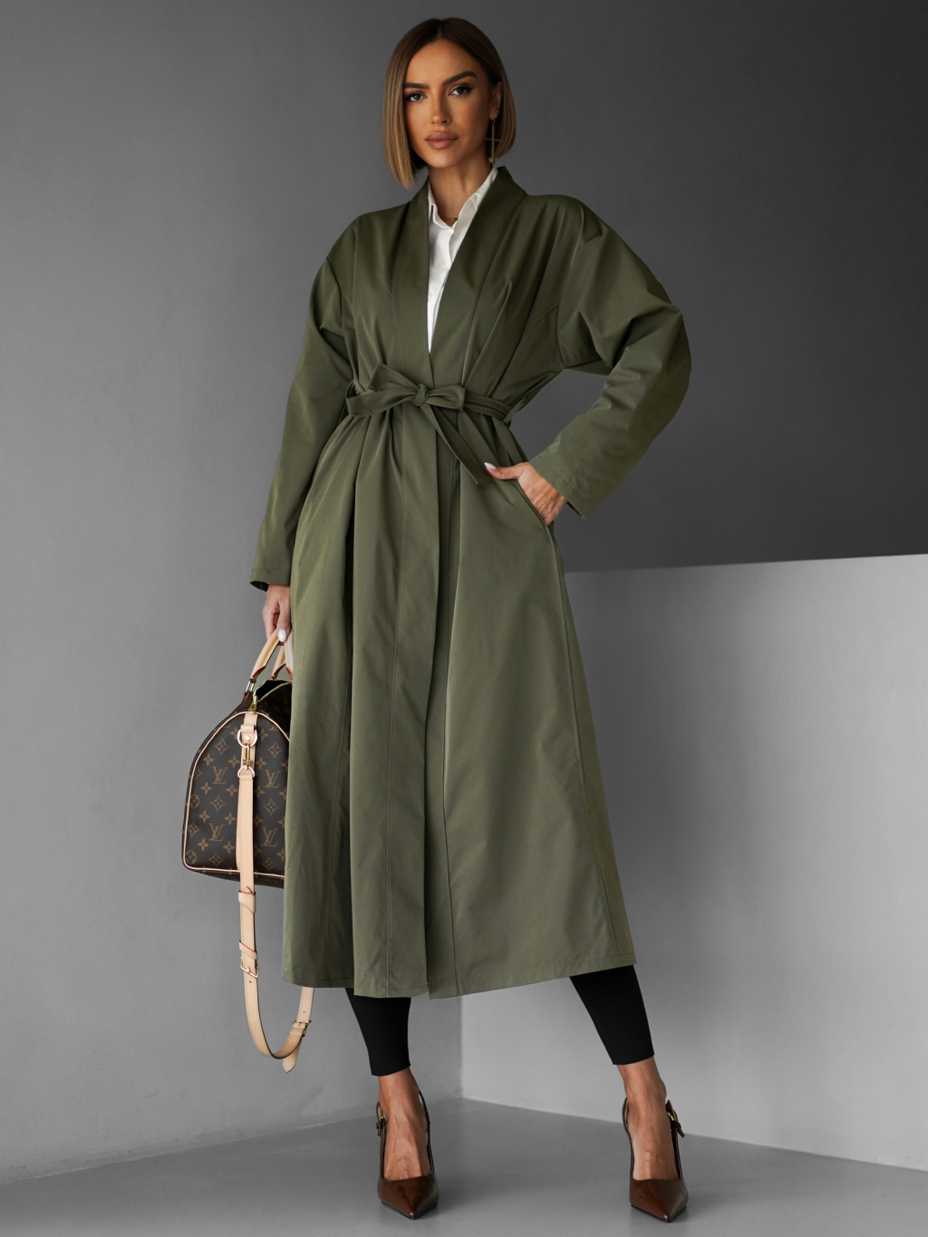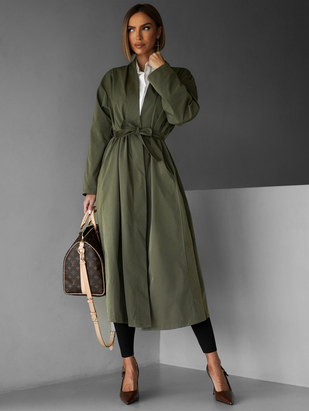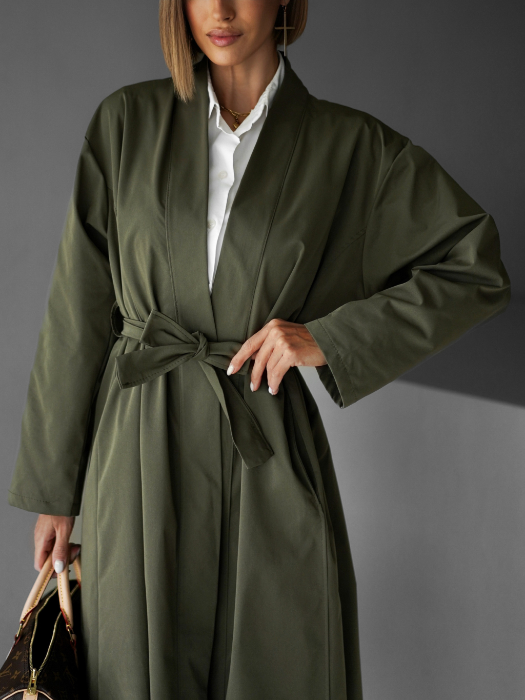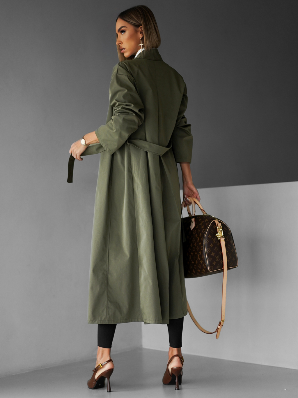 Kaki oversize dlhý kabát AERYTY