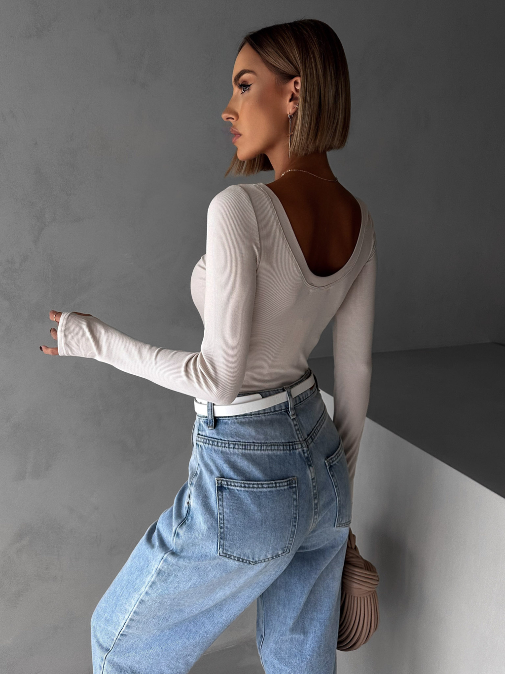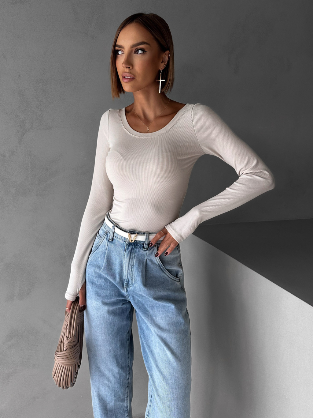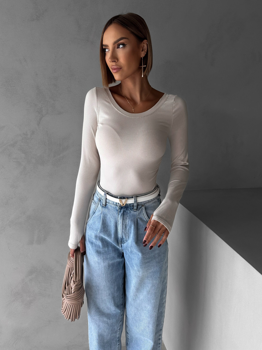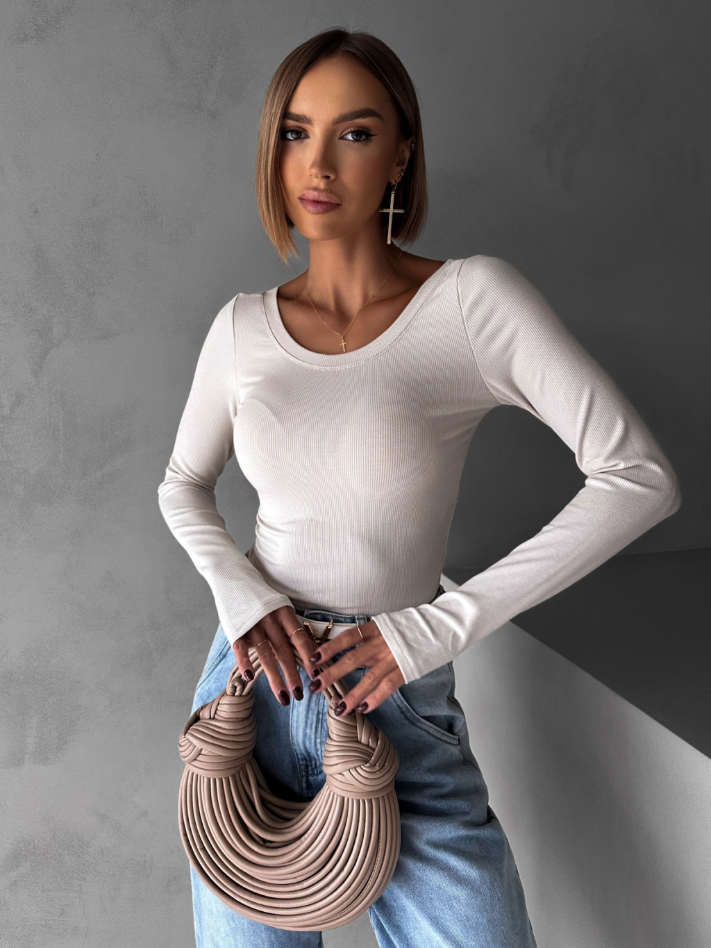 Béžové basic tričko MICHAELA s dlhým rukávom