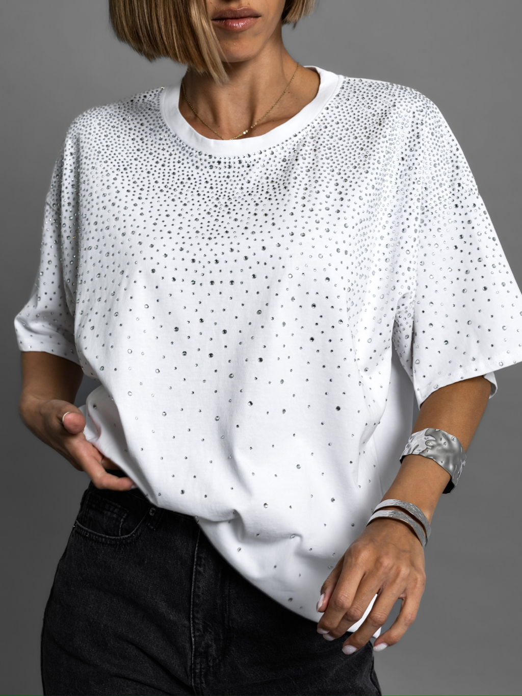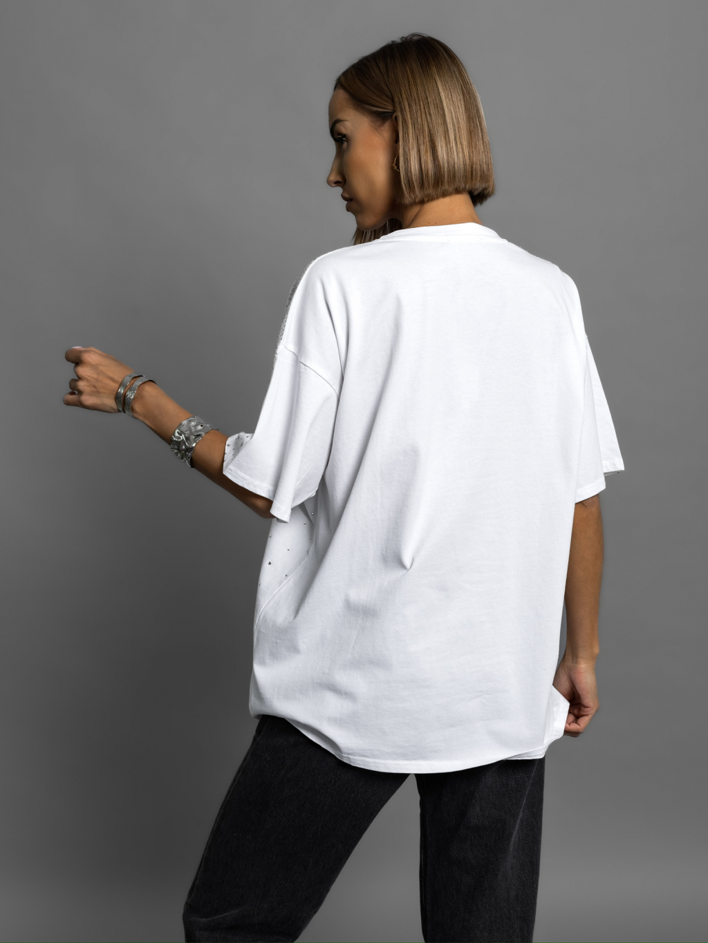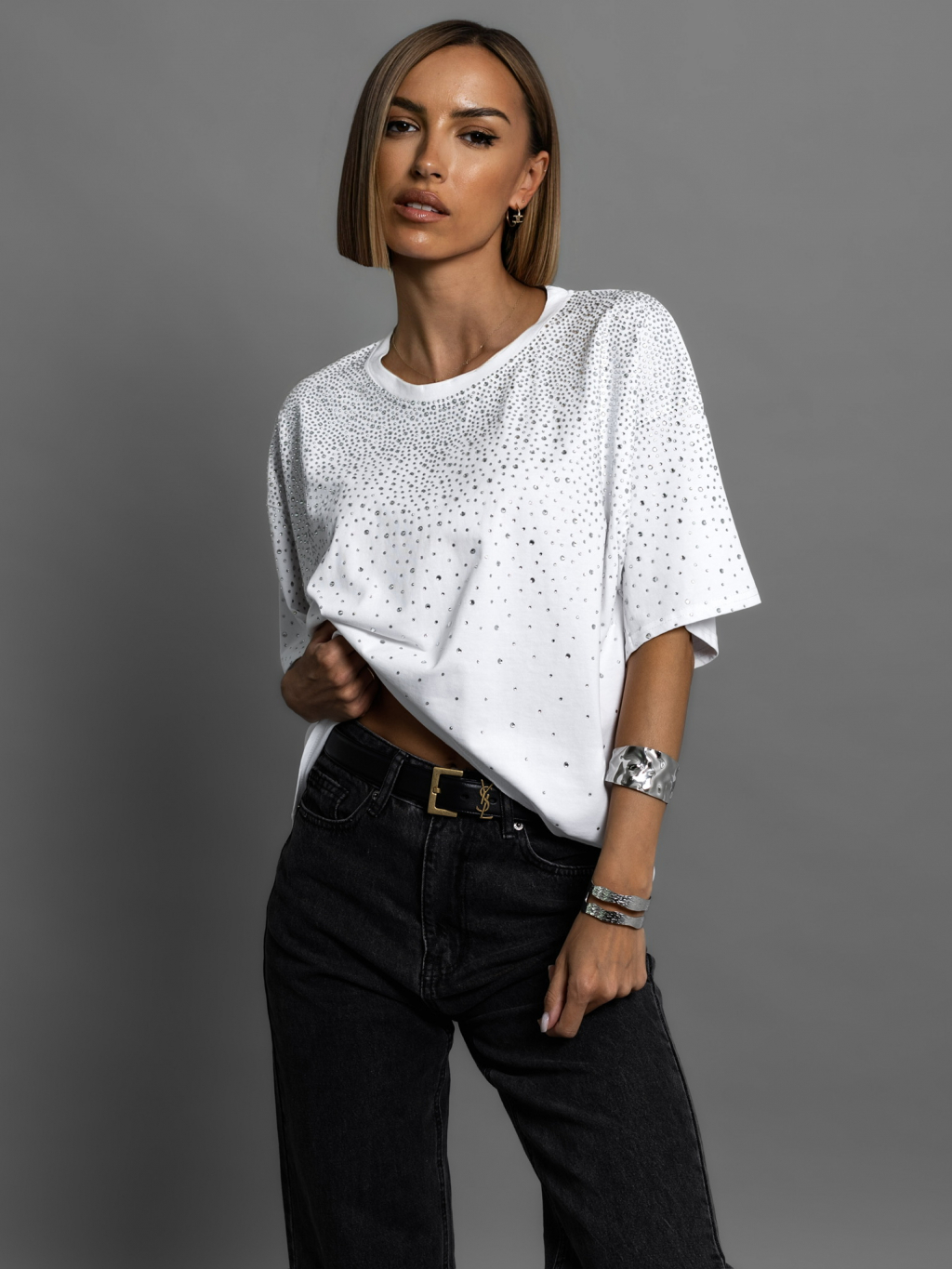 Biele trblietavé oversize tričko QURDEL s kamienkami
