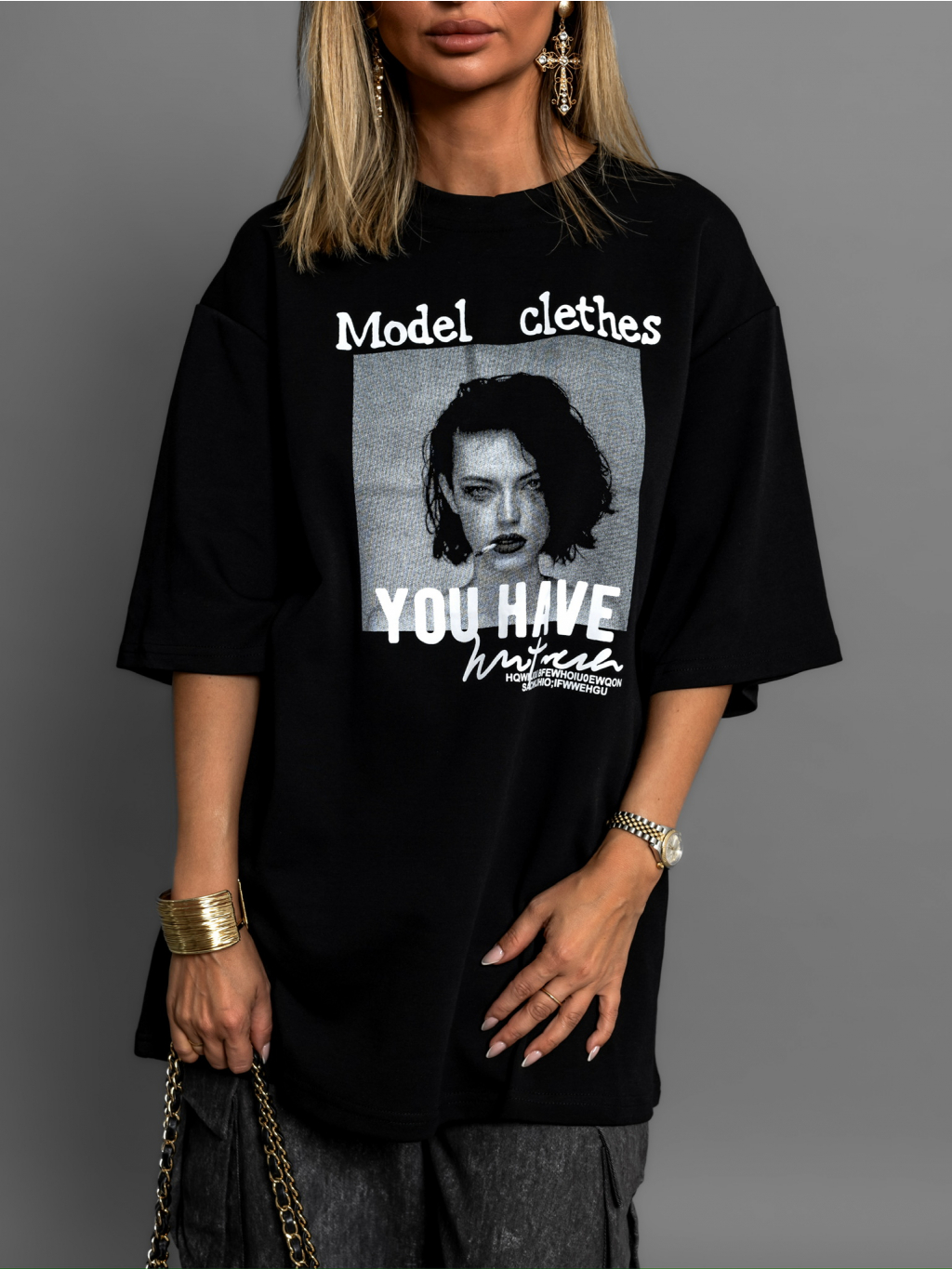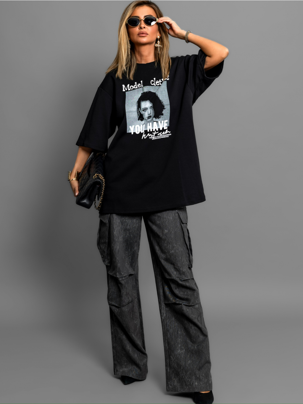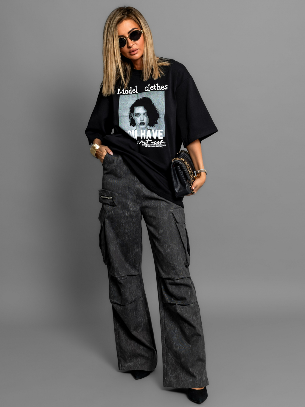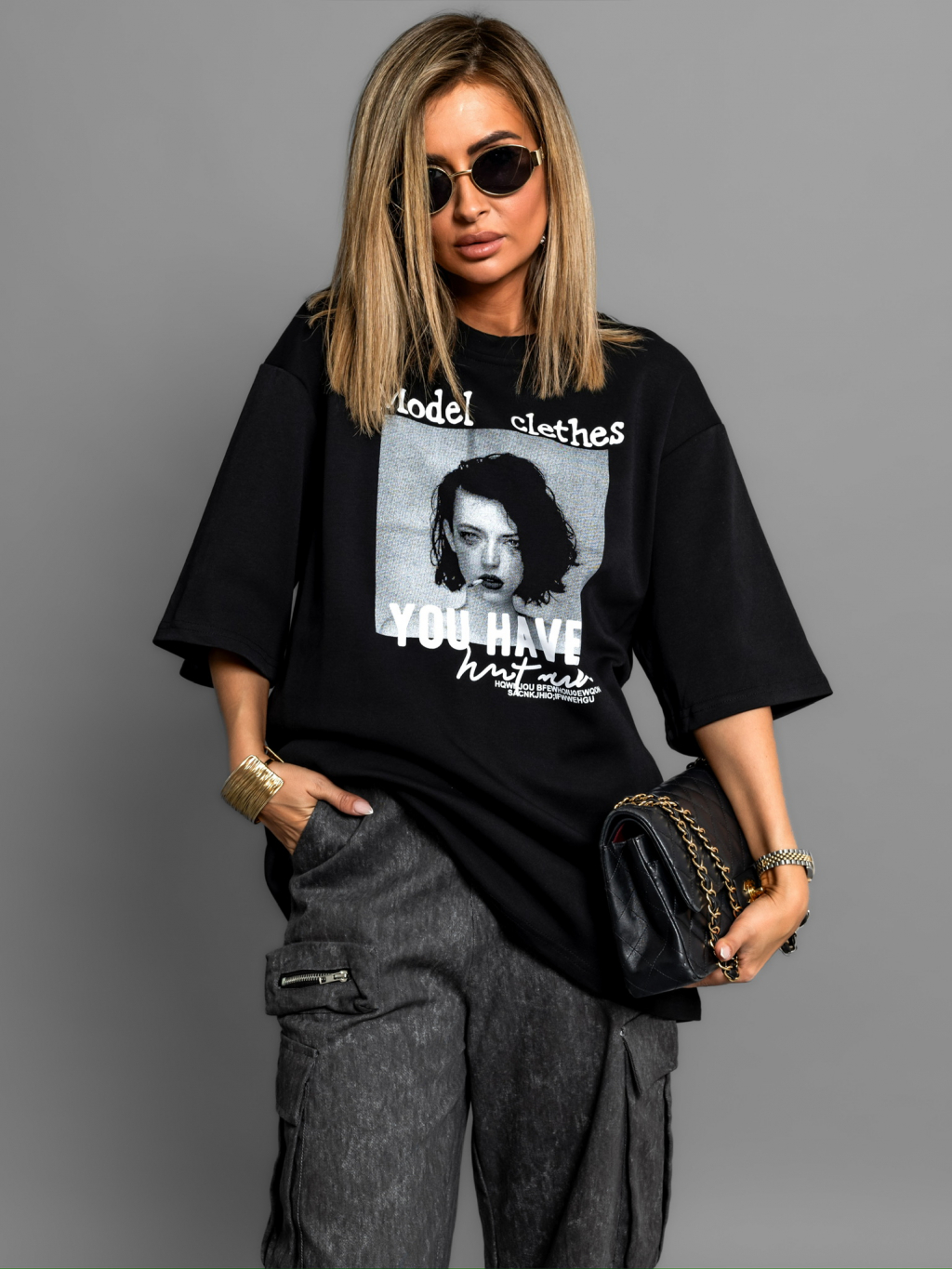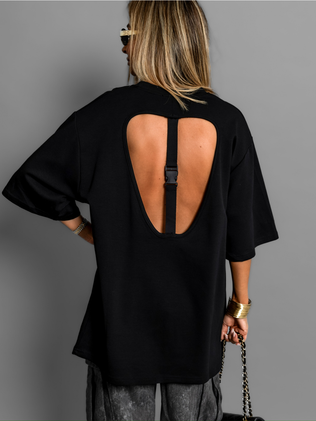 Čierne oversize tričko PERIKLIS s prestrihom na chrbte