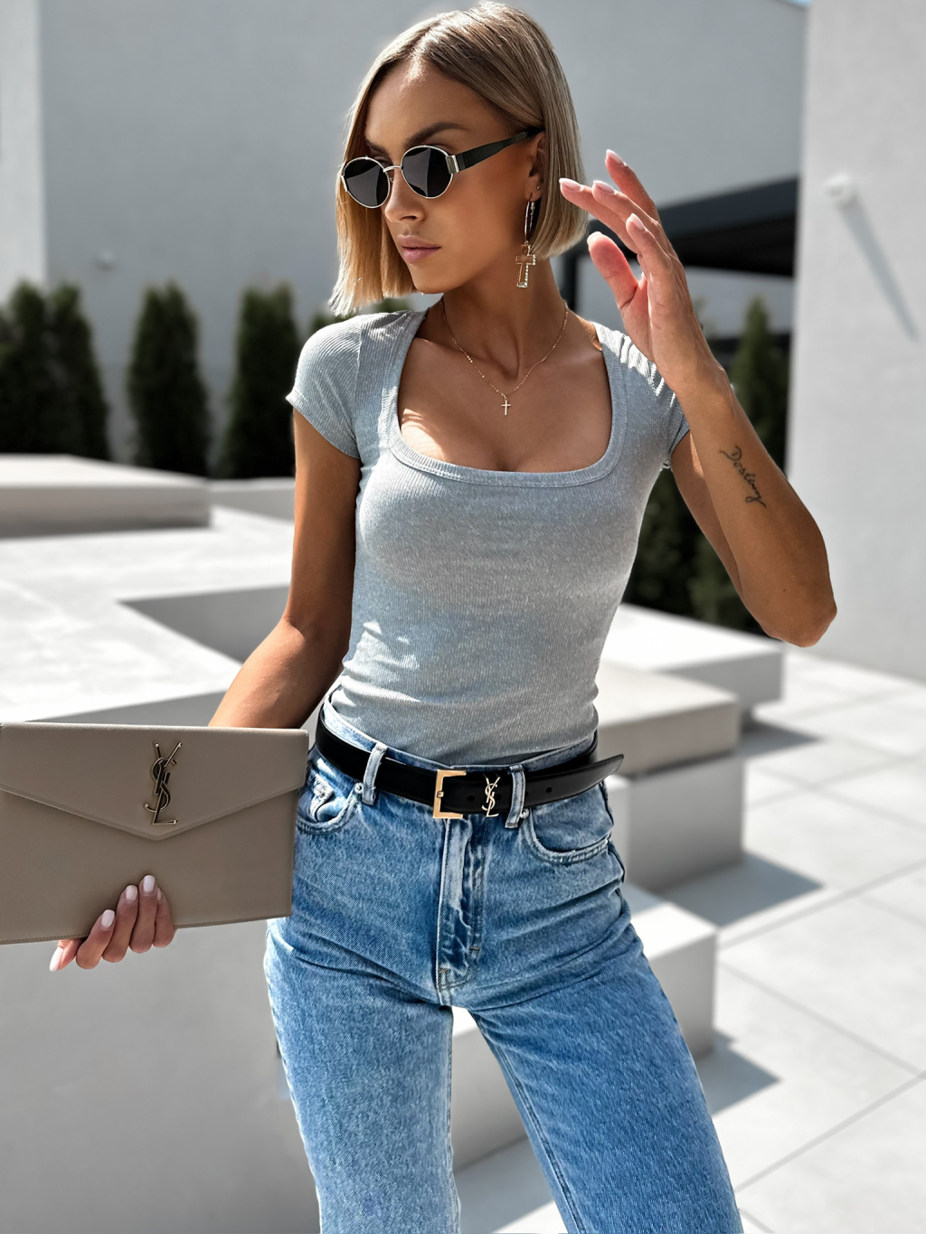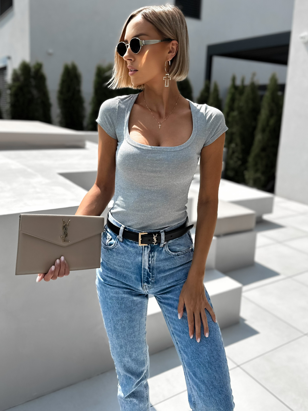 Šedé basic upnuté tričko SILUSTE s výstrihom