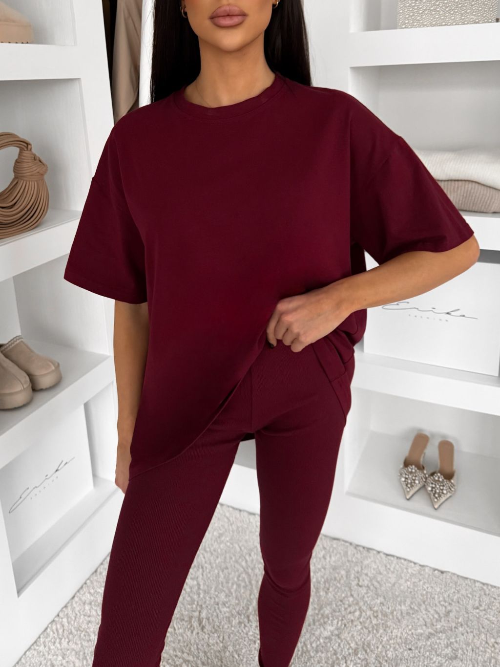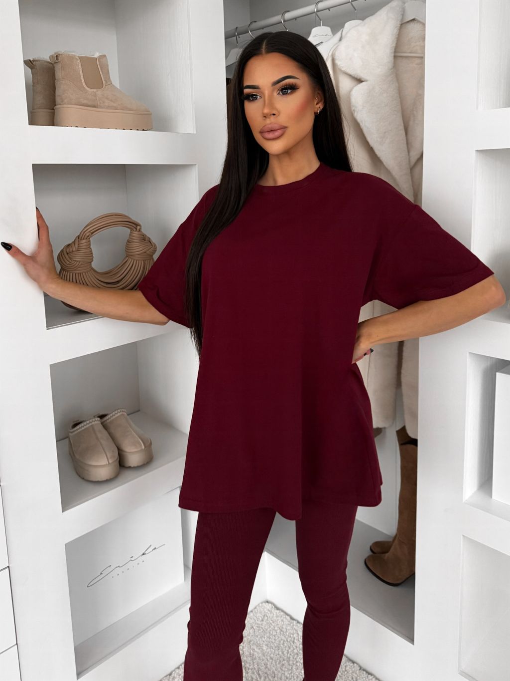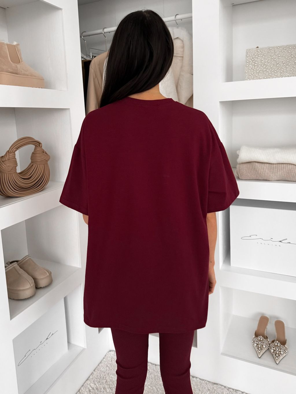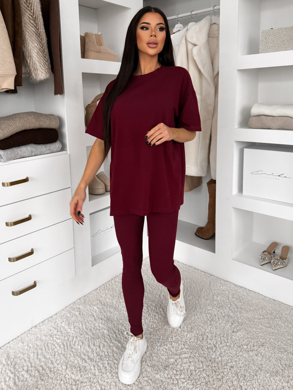 Vínové bavlnené basic tričko LOVETE s krátkym rukávom