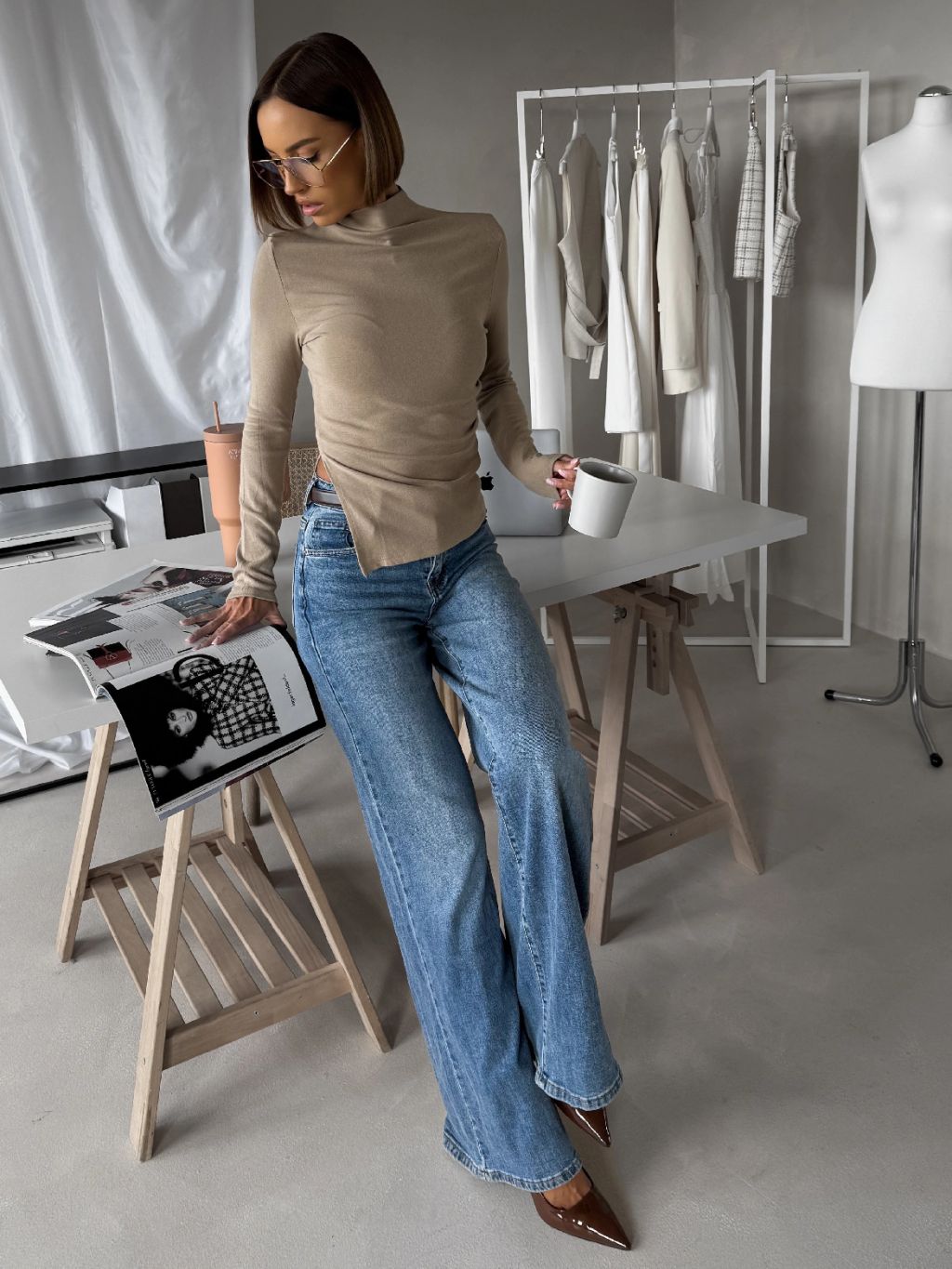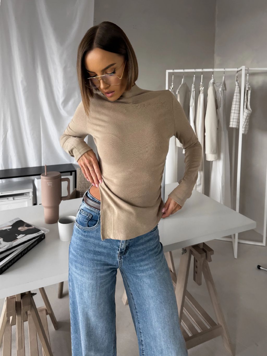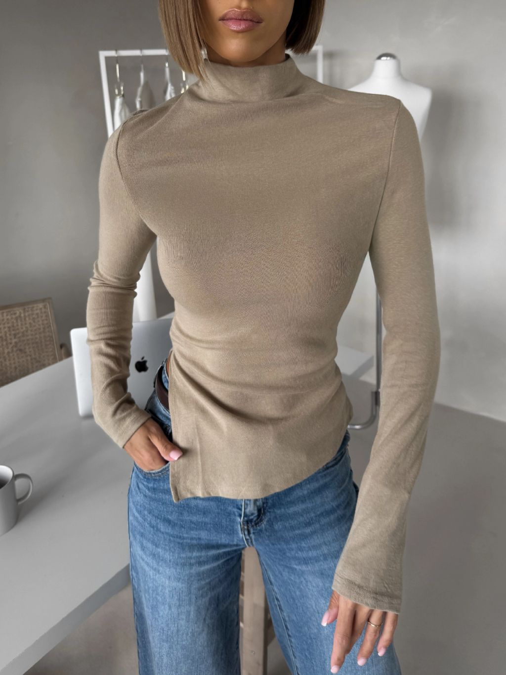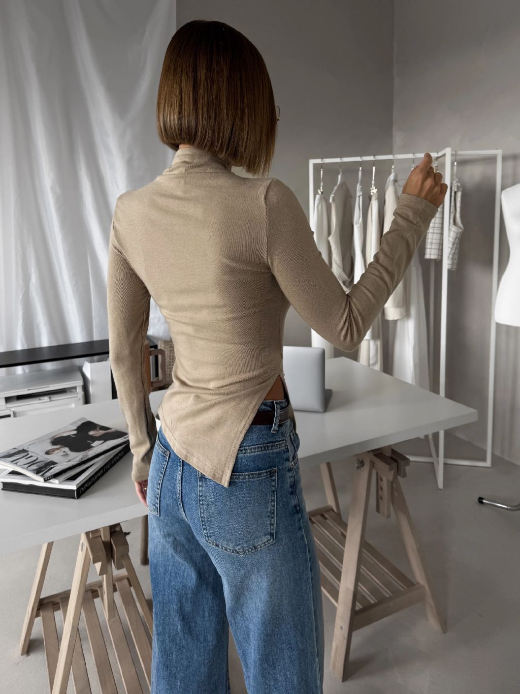 Béžové elegantné riasené tričko HOLLOW s dlhým rukávom