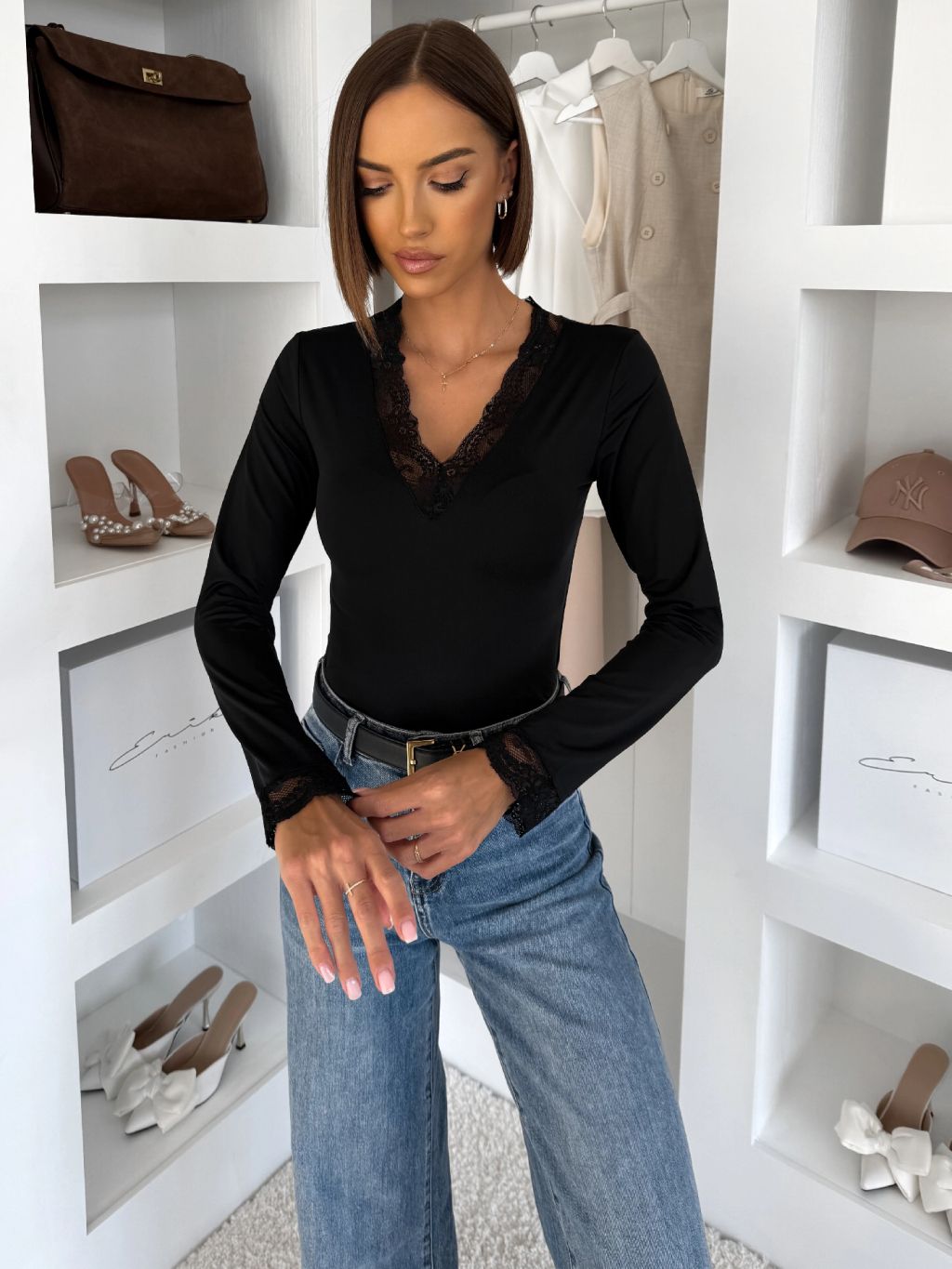 Čierne tričko FURIUS s čipkou a výstrihom