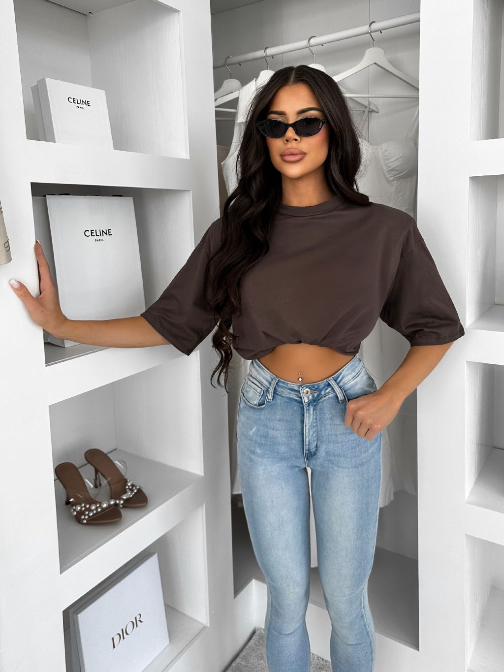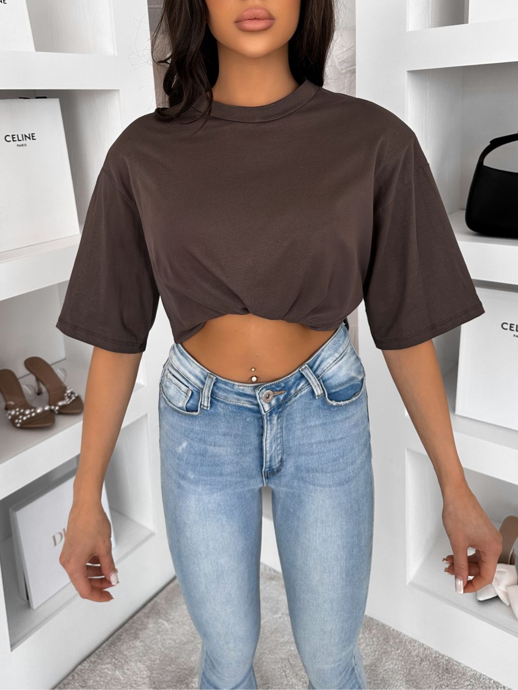 Hnedé 100% bavlna oversize tričko DELYS s krátkym rukávom