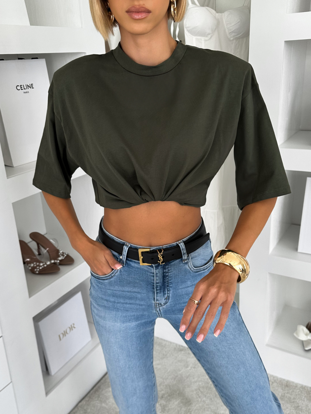 Kaki 100% bavlna oversize tričko DELYS s krátkym rukávom