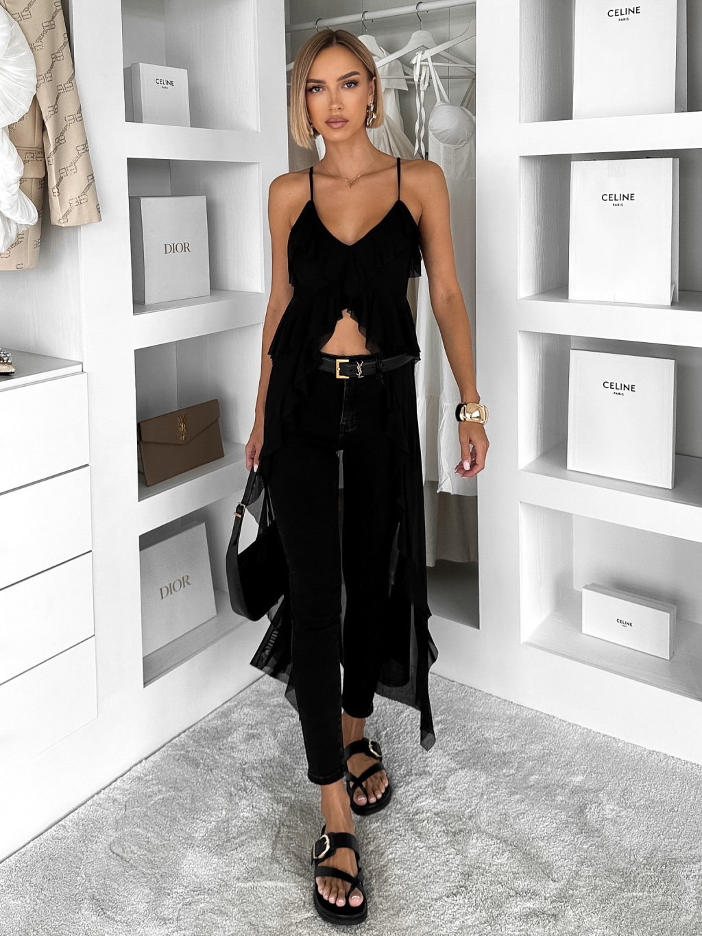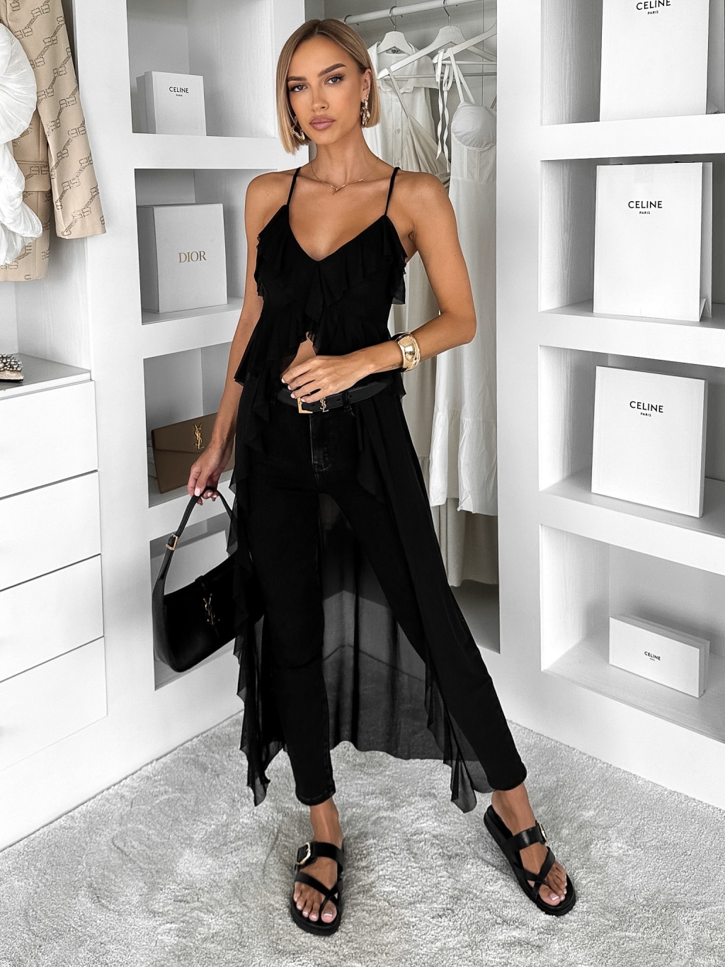 Čierna elegantná tunika LATIVO s volánmi