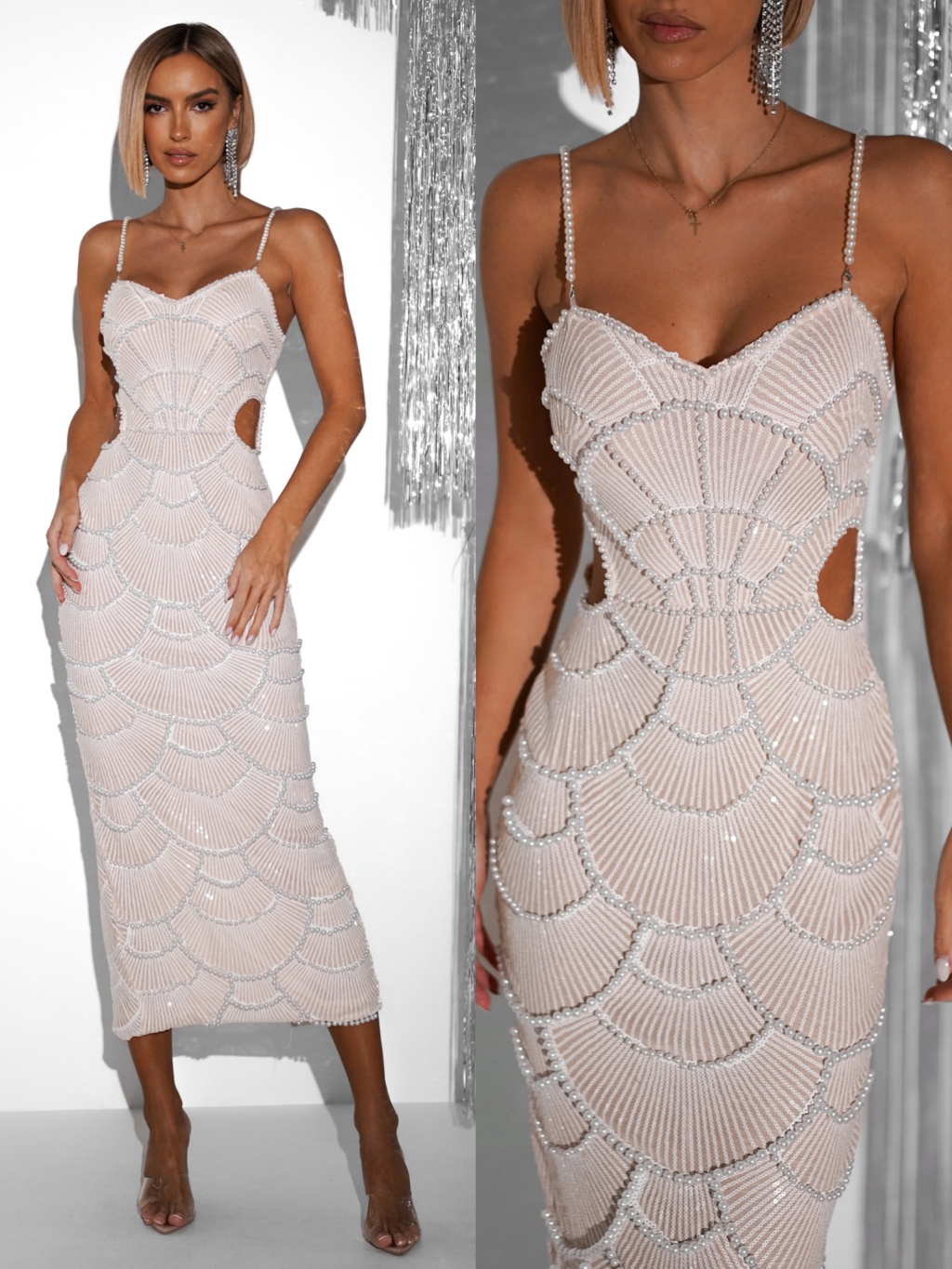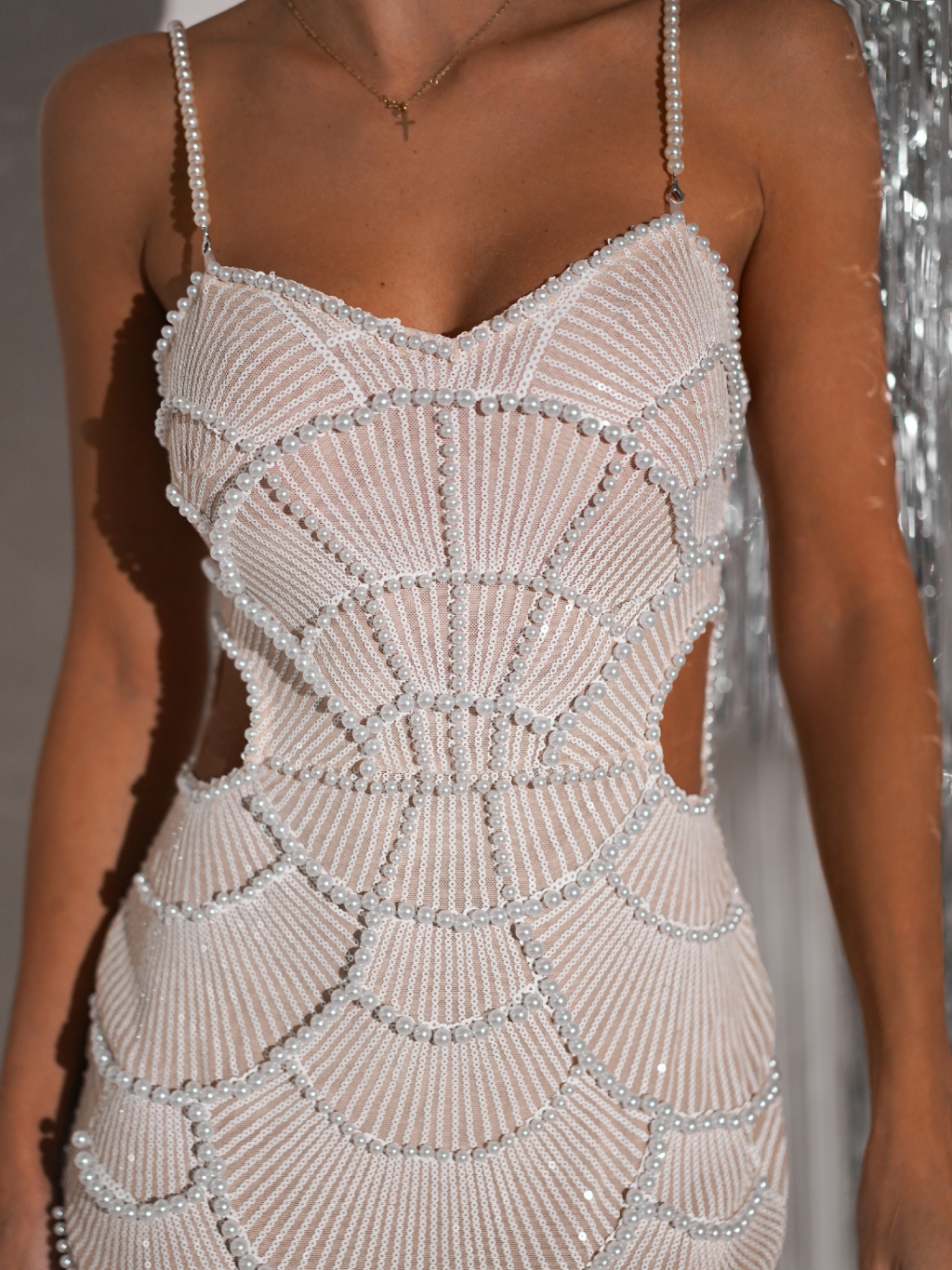 Biele luxusné trblietavé večerné šaty LUMPUR
