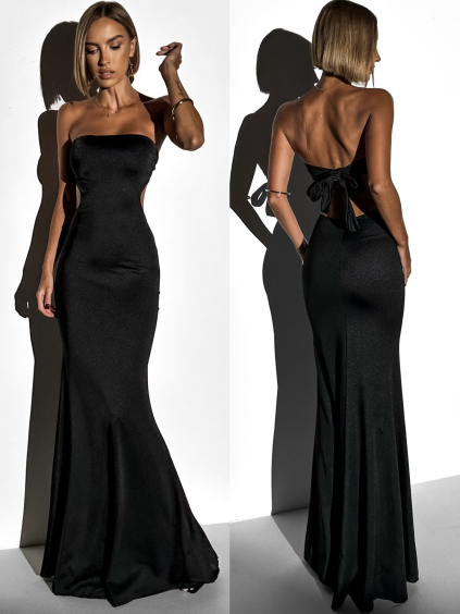 Čierne dlhé spoločenské šaty TAVOLIE s holým chrbtom
